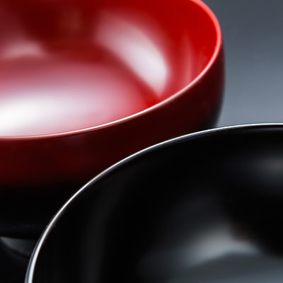 約800年前の鎌倉時代を起源とし、江戸初期に本格的に漆器づくりが始まった秋田県湯沢市の川連漆器。椀類・鉢類などの丸物はトチ・ブナの木を、重箱などの角物はホオノキを材料とし、柿渋と生漆を数回地塗りした後、中塗りを経て花塗(はなぬり)と言われる高度な技術で仕上げ、蒔絵、沈金の絵付けで加飾するのが特徴です。現在、川連町に20軒以上の漆器工房がある中で、江戸時代から続く老舗の阿部健吉商店がお届けする「ぼかし塗り夫婦腰高汁椀 」です。川連漆器の伝統技法でトチの木に朱と黒2色の漆を塗り、その境界にグラデーションを施す「ぼかし塗り」の手法を使って仕上げました。高級感のある木箱入りとなっているので、結婚祝いや金婚・銀婚式の贈り物などにもぜひお使いください。