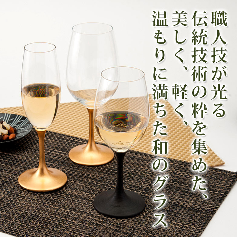 九谷和グラスの接合技術による硝子×漆器・JAPANのコラボレーション。 「JAPAN Glass」は、お椀の生地づくりのろくろ技術により製作した脚部に伝統の越前塗りを施し、九谷焼磁器と江戸硝子を融合させた「九谷和グラス」の清峰堂の接合技術を応用して 硝子を組み合わせて完成させた、日本が誇る伝統技術の結晶ともいえるグラスです。脚部分の素材が天然木ならではの軽さと丈夫さ、手にしたときの心地よい温もり、漆や蒔絵、金箔など日本の職人技で仕上げた「JAPAN Glass」を末永くおたのしみください。