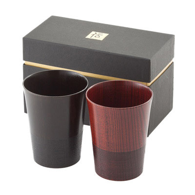 山中漆器伝統の技とこだわりを生かした国産木製漆器シリーズ「伝」(つたえ)のペアカップです。山中漆器は優れた轆轤(ろくろ)挽きの技術で知られており、その生産地石川県加賀市山中では、全国のおよそ8、9割の茶道具の生地を生産しています。轆轤挽きの糸目や、欅の木目の美しさを表現したカップで、天然木と漆塗りによる驚きの軽さと温かみをお楽しみください。