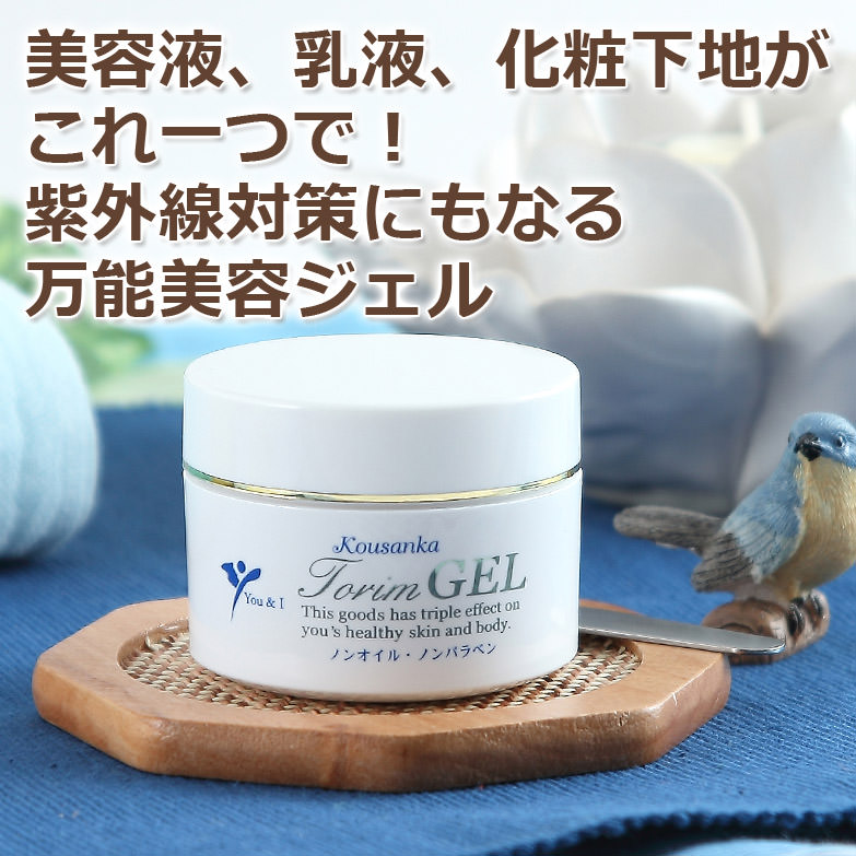 防腐剤・界面活性剤を使用しない、超低刺激の美容ジェルです。これ一つで、美容液、乳液、化粧下地の3機能を有します。低刺激なので敏感肌、乾燥肌の区別なくご試用になれるます。また紫外線を防ぎ、化粧の下地にも使用できる万能型ジェルで、無添加・無香料・ノンアルコール・ノンオイルなので、小さなお子様にもご使用頂けます。