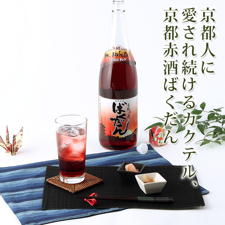 京都の下町に、昔から定番のカクテルがありました。安くてうまくて、お好み焼きや焼きそばなどの下町料理にピッタリ合う、昔から地元の人に愛され続けるカクテルが"ばくだん"です。ぶどう酒がベースの赤くて甘い、京都下町発のこのカクテル。ソーダ割り、水割り、オン・ザ・ロック、お湯割り・・・とその場のシチュエーションに合わせてお楽しみください。きれいな赤色と甘さは天然のぶどうの成分、ポリフェノールも入った身体にやさしいお酒です。