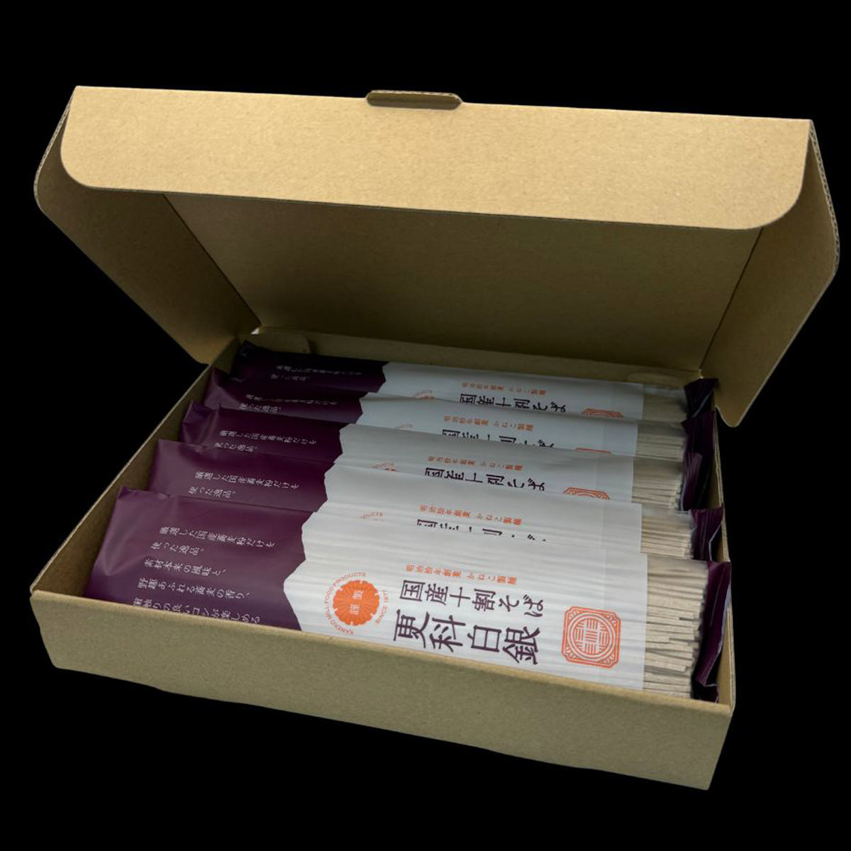 「神名の郷(かむなのさと) かねこ製麺 十割蕎麦 更科白銀 ギフト」は、北海道産石臼挽き更科そば粉を贅沢に十割使用し、真空製麺法により、蕎麦本来の香りと喉越しを極限まで引き出した逸品です。小麦粉を一切使用せず、厳選された国産そば粉100%で作り上げたグルテンフリーの本格蕎麦。風味豊かで、濃厚な蕎麦湯もまた格別な味わいです。ざるそばはもちろん、温そばでもその魅力を存分に発揮。コーデックスHACCP認証(国際的な食品衛生の基準)を受け、最新鋭の製麺機と乾燥システムを導入した製造環境で生み出される高級乾麺です。本物の蕎麦の味わいを追求する方に、自信を持っておすすめする一品です。温かくして食べる場合は器に盛って温かいつゆをかけてお召し上がりください。{調理方法}たっぷりの沸騰したお湯に麺を入れ、4~5分を目安にお好みのかたさに茹でます。茹で上がったらざるにあけて流水で洗い、水を切れば出来上がりです。