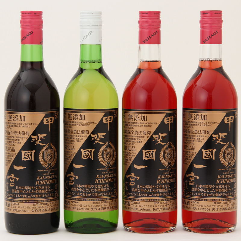 無添加ワインの老舗が自信をもってお届けする山梨県産ワインの白・赤・ロゼ4本セットです。白ワインは甲州種で赤ワインはベリーA種、ロゼは白と赤の黄金比で双方の良いとこ取りの逸品。山梨県産のワインをぜひお試しください。
