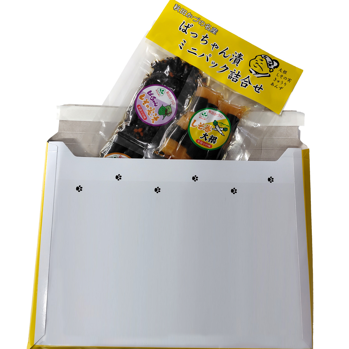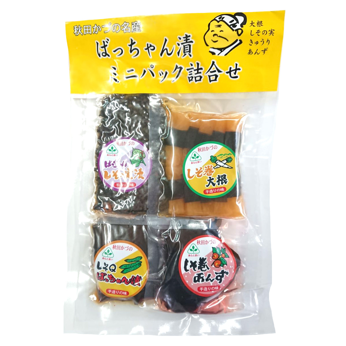 ●数量・内容:しそ巻大根80g、しそ巻あんず60g、しそQばっちゃん漬60g、ばっちゃんしその実漬60g
