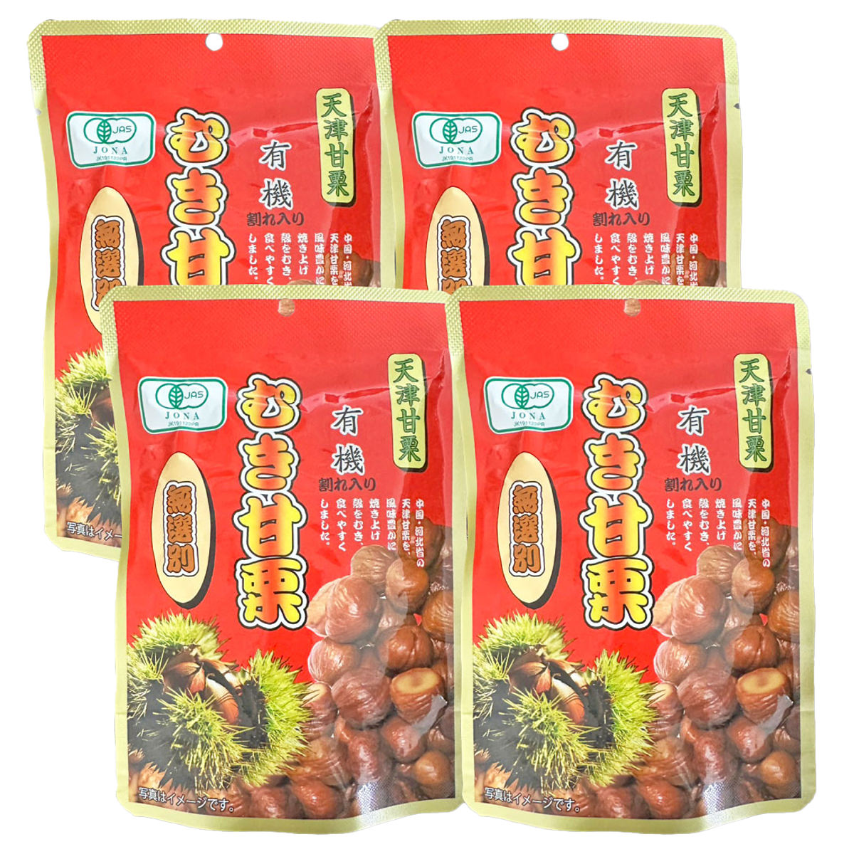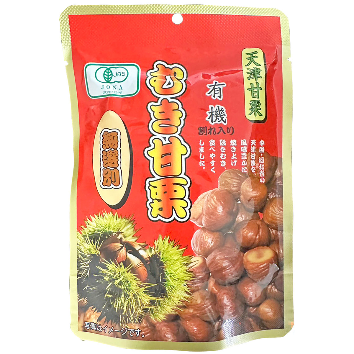 河北省産の天津甘栗を使用し、殻をむいて食べやすくした「無選別むき甘栗 レトルトパウチ 天津甘栗」です。ひとつ一つ丁寧に殻をむき、まるごと焼き上げているので、栗本来の風味をそのまま味わえます。そのままでも食べられますが、ちょっとひと手間かけて温めると、まるで焼きたてのような美味しさに。また、冷蔵庫で冷やしても美味しくお召し上がりいただけます。お菓子に添えるだけで、華やかさがUP。ケーキやアイスクリームなどにトッピングするのもおすすめです。レトルト処理(加熱処理)済みですので、開封前は常温で長期の保存も可能。食べきりしやすい小袋タイプで最後まで美味しく楽しめます。おやつ、お茶請け、おつまみとしてはもちろん、アウトドアの携行食、保存食、非常食などにもご活用ください。本品は有機認証された栗のみを使用し、JAS規格に沿って製造加工された食品です。【有機JAS認証番号:JK191122PR】{温め方}<電子レンジ>袋からとり出し、耐熱容器に移してラップをかけて加熱<オーブン・グリル>袋からとり出し、専用皿に移して加熱<湯煎>中からアルミ袋をとり出し、封を切らずに沸騰したお湯で加熱