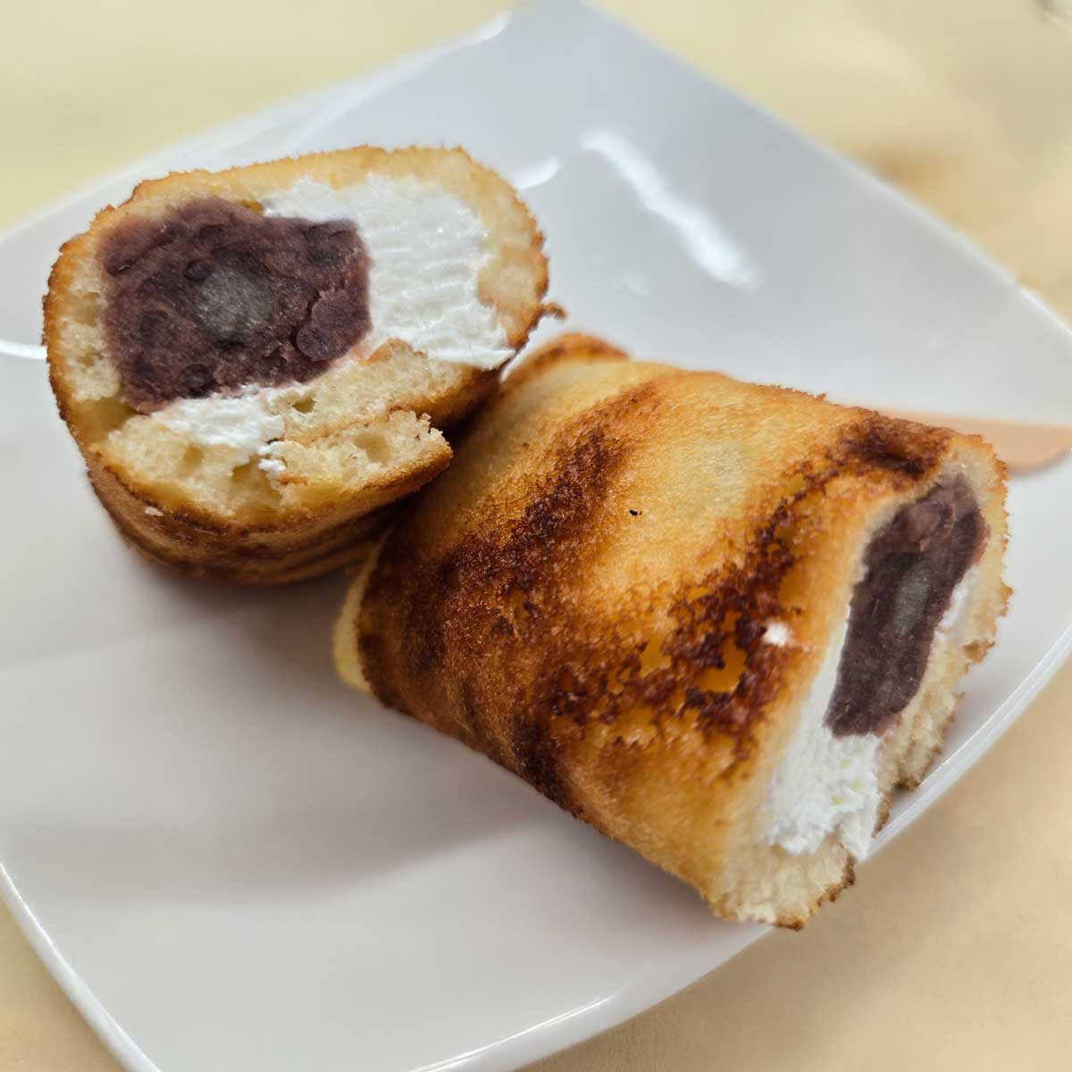 ●原材料:つぶ餡(砂糖(国内製造)、小豆、塩)、ホイップクリーム(食用精製加工油脂、水飴、砂糖、全粉乳、脱脂粉乳、食塩)、小麦粉、砂糖、卵/ベーキングパウダー、カゼインNa、乳化剤、安定剤、香料、カロチン色素、(一部に小麦・卵・乳成分を含む)