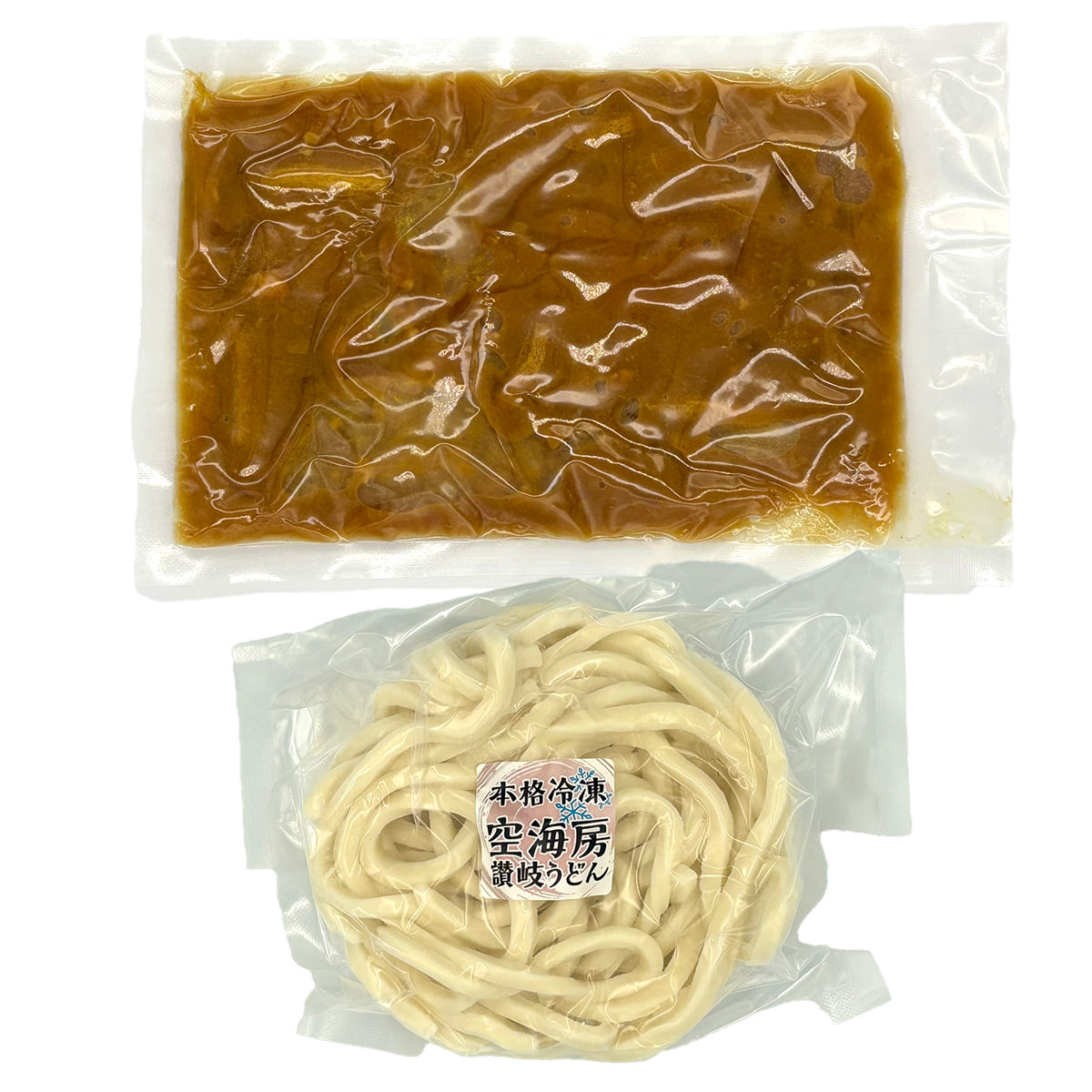 1日平均400人の香川県民が来店する「讃岐うどん 空海房(くうかいぼう)」で人気上位を誇る「カレーうどん 冷凍」です。数種の香辛料とかけ出汁を混ぜ合わせて、鶏肉、玉ねぎ、油揚げをじっくり煮込みました。素材の旨みと甘みを感じることができる逸品です。電子レンジで温めるだけの簡単調理で、いつでもどこでも手軽にお召し上がりいただけます。お好みで薬味を加えてお召し上がりください。{調理方法}うどんは袋のまま電子レンジ(600W)で6分ほど加熱、出汁は袋のまま器に乗せて電子レンジ(600W)で3分ほど加熱してください。うどんを器に移し、温めた出汁をかけてお召し上がりください。
