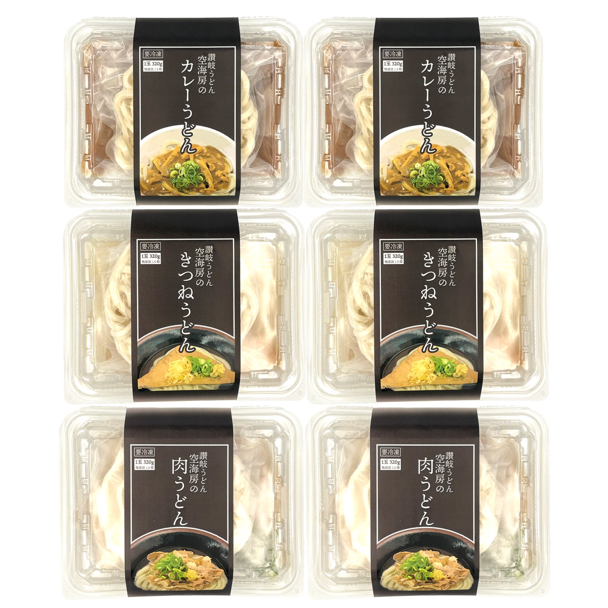 ●数量・内容:肉うどん(讃岐うどん320g、肉出汁350g)、きつねうどん(讃岐うどん320g、きつね出汁350g)、カレーうどん(讃岐うどん320g、カレー出汁350g) 各2
