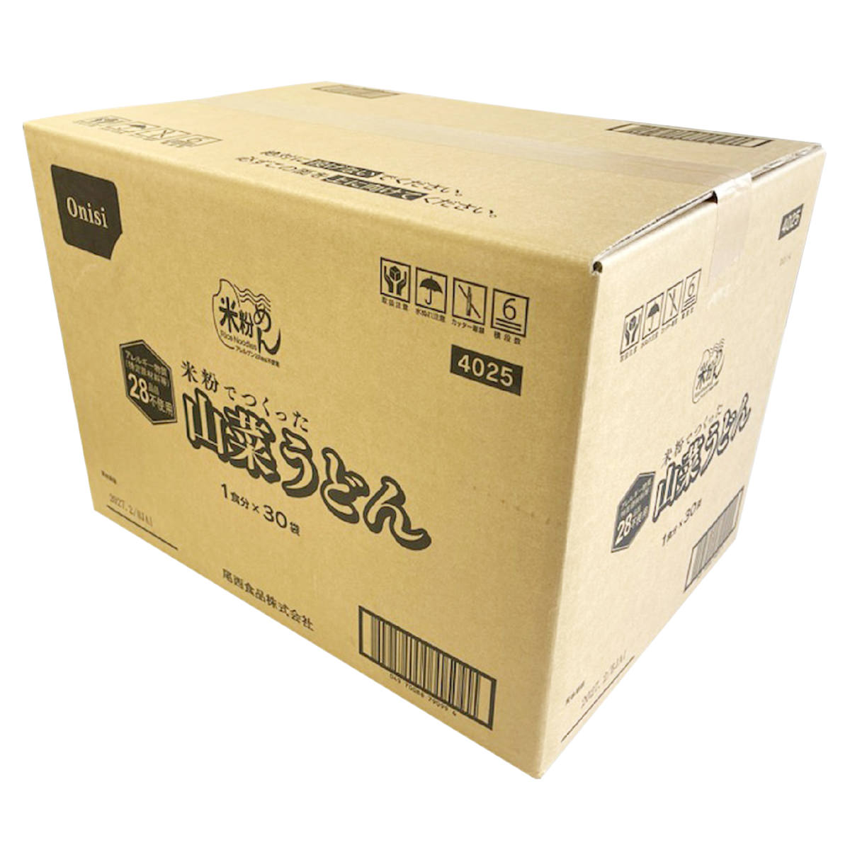 尾西食品の「米粉で作った山菜うどん」30袋セットです。国産米粉100%使用、かつお出汁仕立てのうどん風米粉麺です。食べやすくて「ほっ」とする山菜具材の食感をお楽しみください。熱湯を注いで7分待つだけで出来上がります。フォーク付きで食器の準備はいりません。グルテンフリー、アレルギー物質(特定原材料等)28品目は使用しておりません。尾西の保存食シリーズは、もしもの時の長期保存食、非常食としての利便性だけでなく、美味しさにもこだわっており、登山やアウトドアの携行食、災害用非常食、備蓄食料など、用途に合わせた使い方でいつでもおいしく食べられる保存食品です。