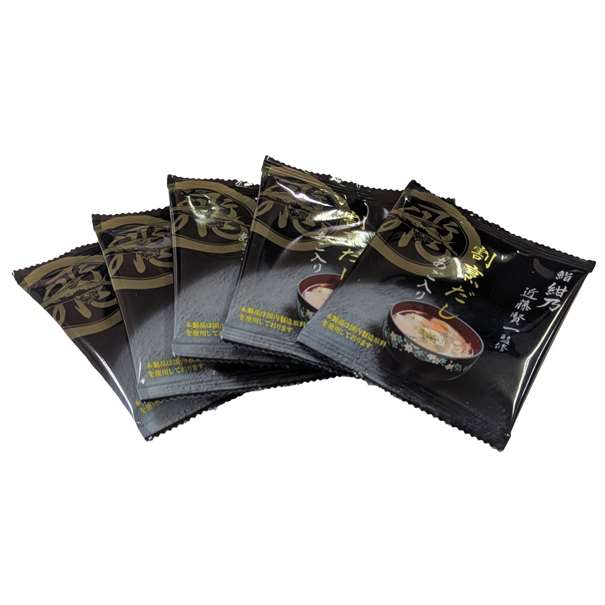 ●原材料:<あご入り割烹だし>かつお節(国内製造)、むろあじ節(国内製造)、いわし煮干し(国内製造)、飛魚(アゴ)煮干し(国内製造)、こんぶ(北海道)、乾しいたけ(国内製造)