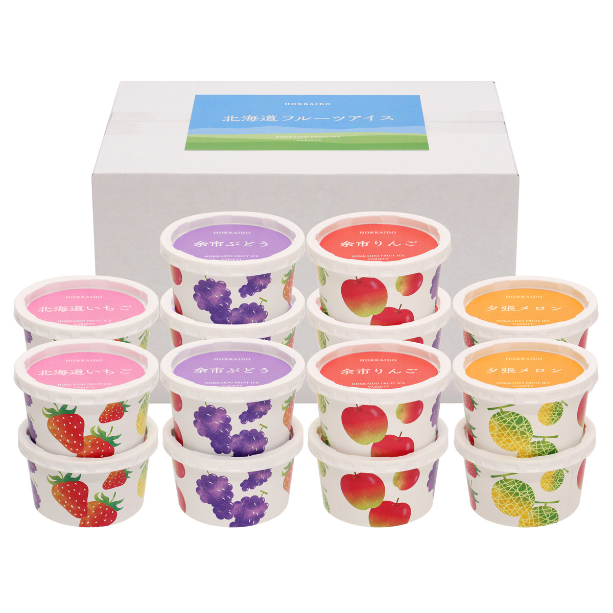 「北海道 フルーツアイス ギフトセット」は、北海道の4種類のフルーツのおいしさを詰め込んだ、風味いっぱいのアイスの詰め合わせです。余市りんご、余市ぶどう、北海道いちご、夕張メロンの4つのフレーバーを食べ比べてお楽しみください。幅広い年齢層の方にお楽しみいただけるバラエティセットです。おやつやデザート、ご褒美スイーツなどとして、お取り寄せでご堪能ください。化粧箱に入れてお届けしますので、ギフトや贈答品などにもおすすめです。