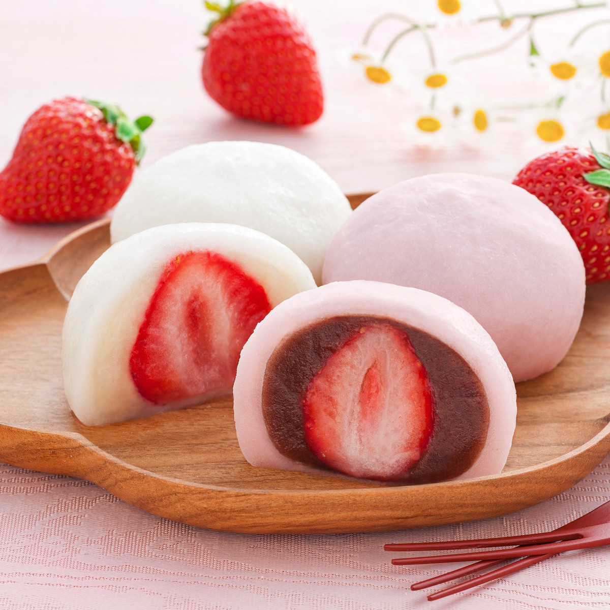 ●原材料:<白あん>白あん(いんげん豆、らい豆、砂糖、水あめ)(国内製造)、もち米、いちご、もち粉、食塩、でん粉/トレハロース、酵素、(一部に大豆を含む)