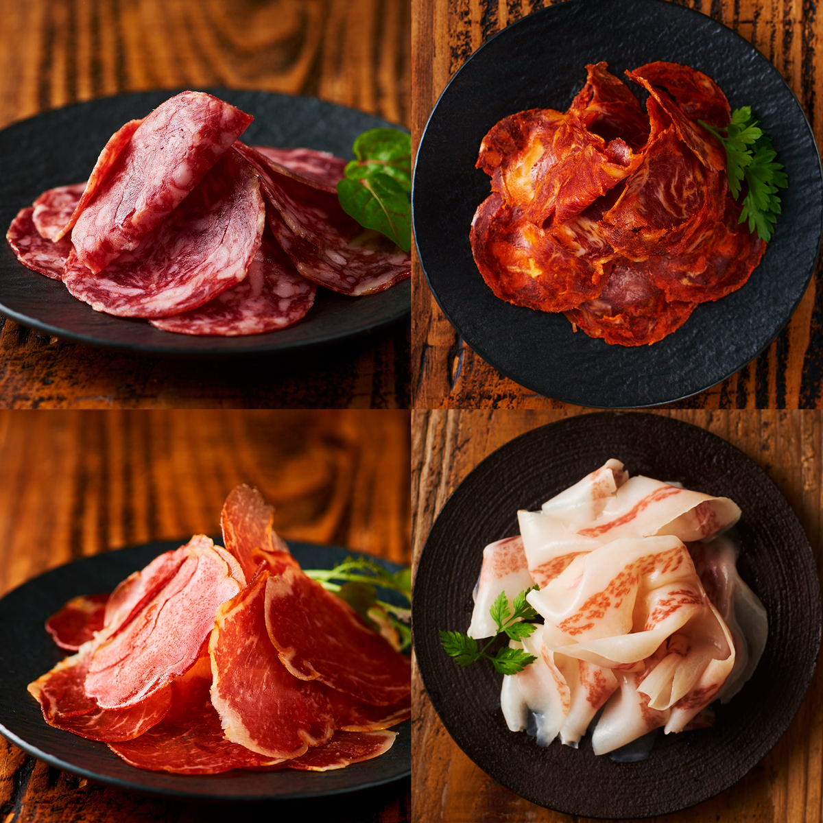 ●数量・内容:サーロイン生ハム、トントロ生ハム、サラミ、チョリソー 各20g