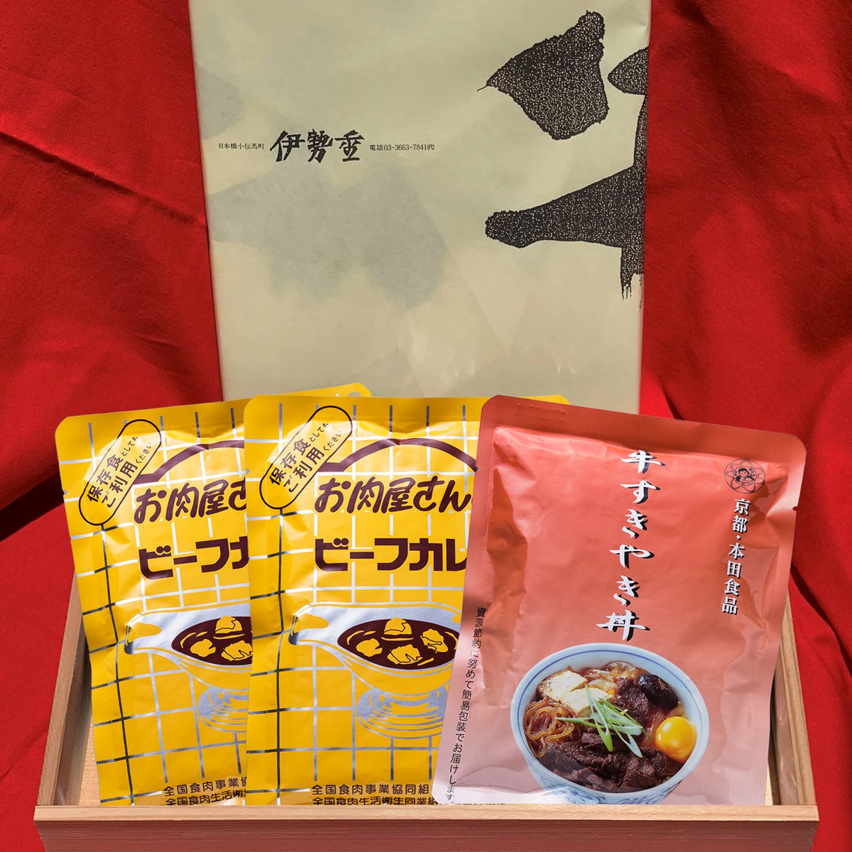 東京の老舗すき焼き店「伊勢重」、東京都の食肉組合おすすめのお肉屋さんのビーフカレーとすき焼き丼のセットです。 【お肉屋さんのビーフカレー】ごろりと入った牛肉が、コクのあるルーとマッチしてあと引くおいしさです。 【すき焼き丼】牛肉に割下がよくしみこんでいて、次々にお箸が進みます。 食肉専門店が手がけているだけあって、お肉の旨味がしっかり詰まっています。 昼食や夕食で手軽に使いやすい、レトルトでのお届けです。