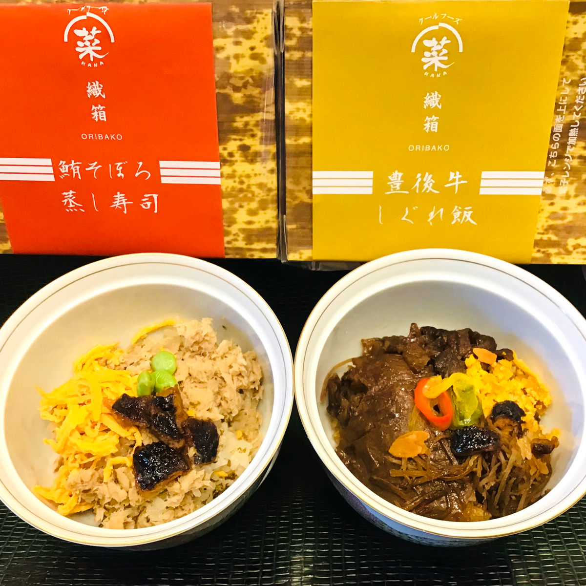 ●原材料:<豊後牛しぐれ飯>米(大分県)、牛肉(豊後牛)(大分県産)、ごぼう、椎茸、卵、きび砂糖、醤油(小麦・大豆を含む)、本みりん、酒、有機白だし、米粉、パプリカ、にんじん、こめ油、ごま油、食塩