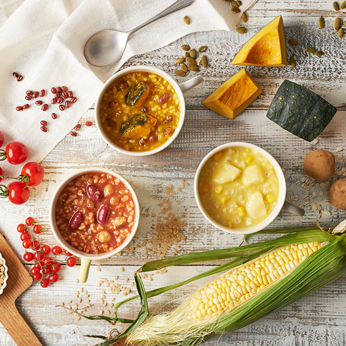 無添加調理にこだわった、「potayu(ぽたーゆ)」のからだにやさしい野菜を食べる玄米のおかゆ3種(コーン・パンプキン・トマト)セットです。1日を頑張るための朝食や忙しいランチタイム、疲れた日や飲み過ぎた次の日のごはんとして便利です。安心な日常のためのストック食としてもお使いいただけます。温めてもそのままでもお召し上がりいただけます。「食べること」から支えていく、そんなおかゆに仕上がりました。ぜひご賞味ください。 【石井食品】特集はこちら