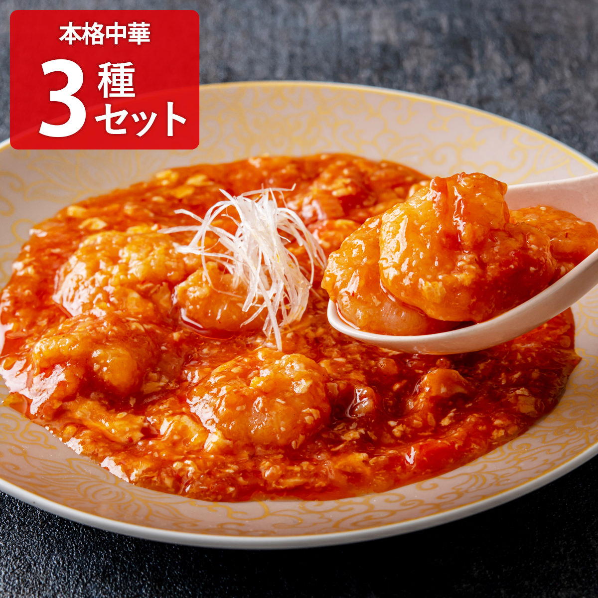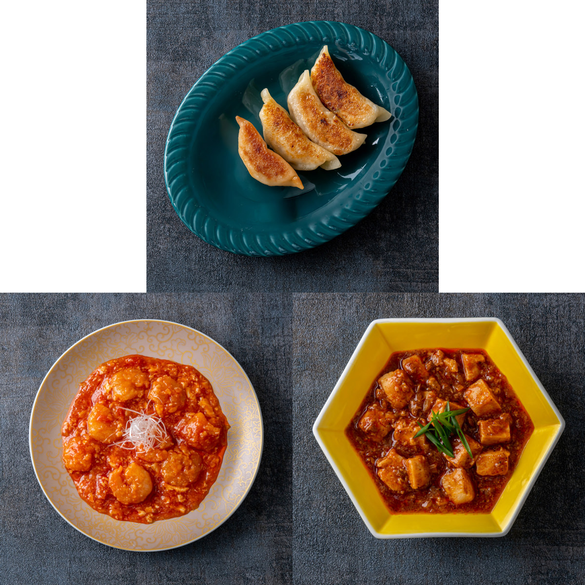 ●数量・内容:大海老のチリソース130g、本格四川風麻婆豆腐130g、あふれる肉汁餃子140g(35g×4)