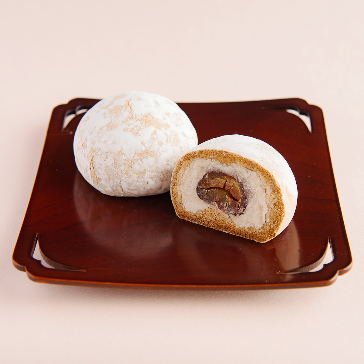 ●原材料:白あん(手芒豆あん、砂糖、水あめ)(国内製造)、渋皮付栗甘露煮(栗、砂糖)、砂糖、小麦粉、卵、粉糖、はったい粉、水あめ、醤油/膨張剤、(一部に小麦、卵、大豆を含む)