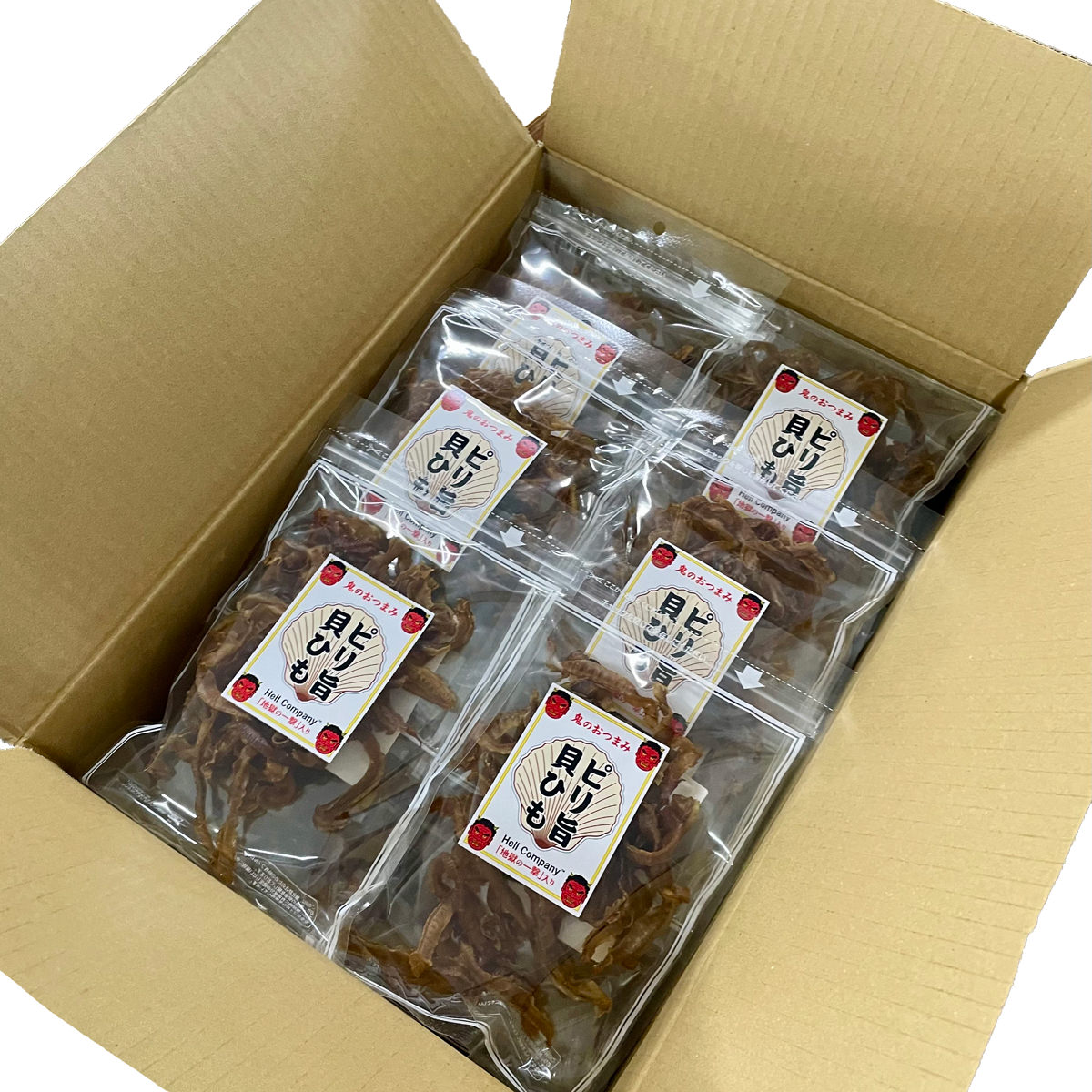 お酒の御供にピッタリの「Hell Company ピリ旨 貝ひも」です。国産のほたて貝ひもに、Hell Company(ヘルカンパニー)自慢の日本製鬼辛デスソース(激辛調味料)「地獄の一撃」を少し加えて、美味しく仕上げております。どなたにでもお召し上がりいただけるくらいのピリ辛に仕上げておりますので、ぜひお試しください。ビールのおとも、お酒のおつまみなどとしてお取り寄せでお楽しみください。