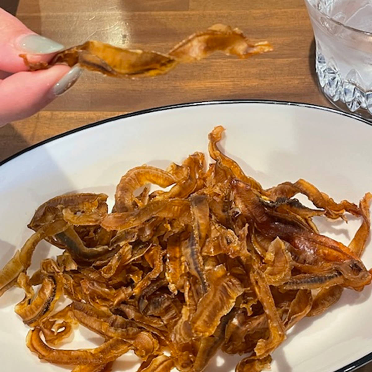 ●原材料:味付き貝ひも(ほたて貝ひも(国内産)、砂糖、食塩)、唐辛子調味料(水飴、赤唐辛子、ハバネロ、その他)/ソルビトール、調味料(アミノ酸等)、着色料(カラメル色素、パプリカ色素)、香辛料抽出物、(一部に大豆を含む)