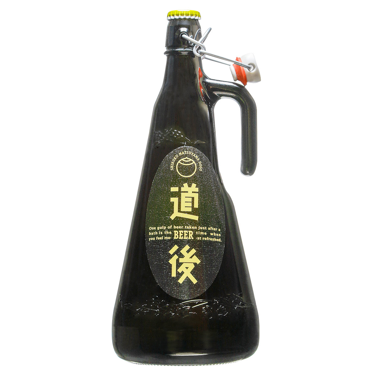 日本最古の歴史を誇る名湯道後温泉の地ビール「道後ビール」です。「道後ビール スタウト」は仕込み水に清酒『仁喜多津』を生んだ愛媛県松山市の熟田津(にぎたづ)の良水を使い、麦芽やホップの厳選から製法まで、水口酒造の長年の清酒づくりの技を生かし造り上げ、良質なモルトを贅沢に使い、熱処理を施さずに作った酵母が入ったままの生ビールです。スタウトタイプは英国アイルランドで古くから造られているビールでローストした麦芽の香ばしい独特の香りと強い苦みを持つ濃色なビールの代表的なもので、ビール好きの方に好まれています。