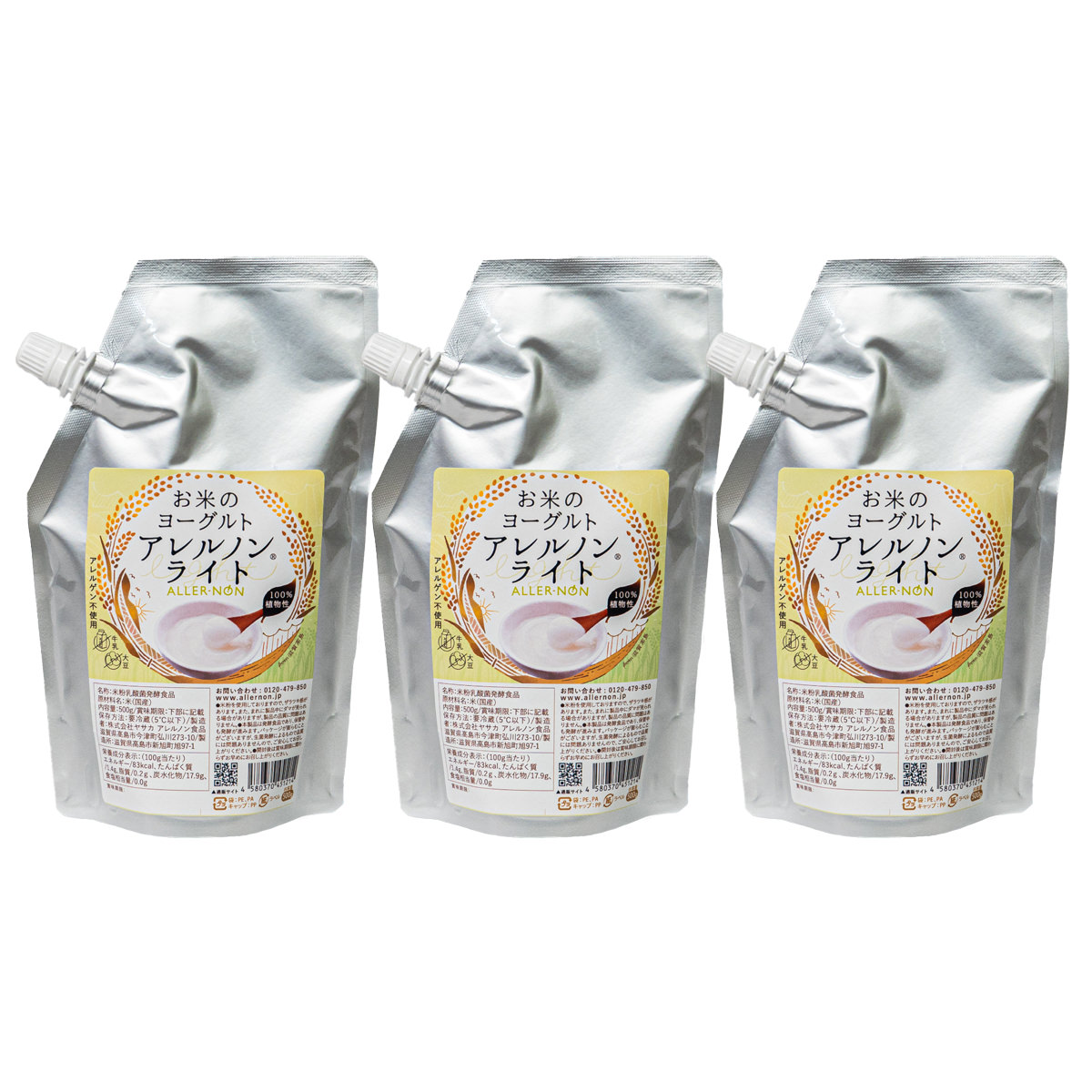 「ヤサカ アレルノン食品 お米のヨーグルト アレルノンライト」は、厳選したお米を粉にし、湧き水で炊き上げ、漬物由来の乳酸菌で発酵させた100%植物性のヨーグルトです。地元滋賀県高島市産の環境こだわり米を使用し、植物性乳酸菌で発酵しています。砂糖不使用のため、お好みのシロップなどでアレンジしてお召し上がりください。アレルノンライトの原材料は米と水、乳酸菌のみ。乳酸菌は生きたままで、ヤサカ アレルノン食品のお米のヨーグルト「アレルノン」と風味は変わりません。アレルノンご愛食のみなさまにもおすすめです。※環境こだわり米とは、滋賀県産のお米のうち、環境に配慮した栽培方法で育てられたものです。