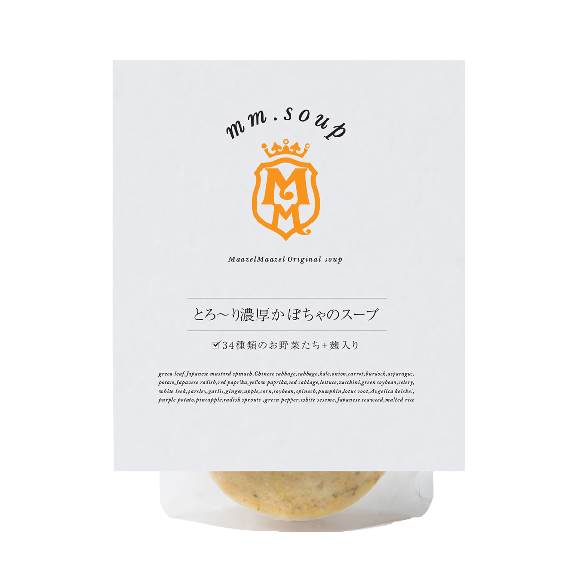 Maazel Maazelオリジナルの食べるスープスムージー。「とろーり濃厚かぼちゃのスープ」は、美容と健康に効果のあるカロテンが豊富です。濃厚なかぼちゃの旨味が加わり、優しい甘みが広がります。パスタソースとしても美味しくお召しあがりいただけます。