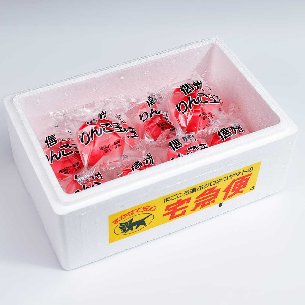 ●原材料:異性化液糖(国内製造)、水あめ、砂糖、乳製品、植物油脂、りんご濃縮果汁(長野県産100%)、食塩/香料、安定剤(増粘多糖類)、乳化剤、酸味料(一部に乳成分・りんごを含む)