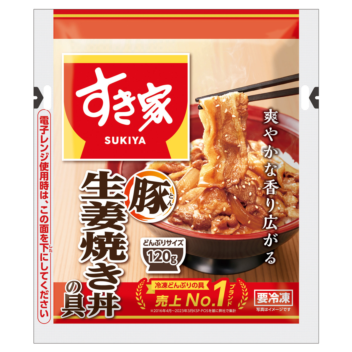 国内外に店舗を展開する牛丼チェーン”すき家”が監修を務める「すき家 豚生姜焼き丼の具」です。しょうがをたっぷり使用し、隠し味にオイスターソースをプラス。深いコクと旨み、爽やかなしょうがの香りが食欲を掻き立てます。電子レンジで温めて、アツアツのご飯にのせるだけの簡単調理。時短で調理できますので、昼食、夕食、夜食など、さまざまなシーンでご活用ください。スリムな袋入りの冷凍豚生姜焼き丼(とんしょうがやきどん)の具なので、保存にも便利。ストックや常備品などにもおすすめです。{調理方法}<電子レンジ>凍ったまま袋は開けずに、蒸気口のある面を上にして、耐熱皿にのせて加熱してください(1袋あたり500Wで約3分10秒/600Wで約2分40秒)。<湯せん>凍ったまま、沸騰したたっぷりのお湯に入れ、フタをせずに加熱してください(1袋あたり約5分)。加熱後はお早めにお召し上がりください。品質にかかわることがありますので、一度解凍したものは再び冷凍しないでください。商品の改訂等により、商品パッケージの記載内容やデザインが異なる場合があります。