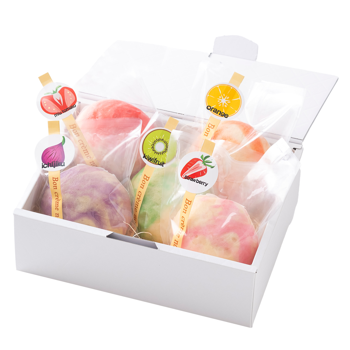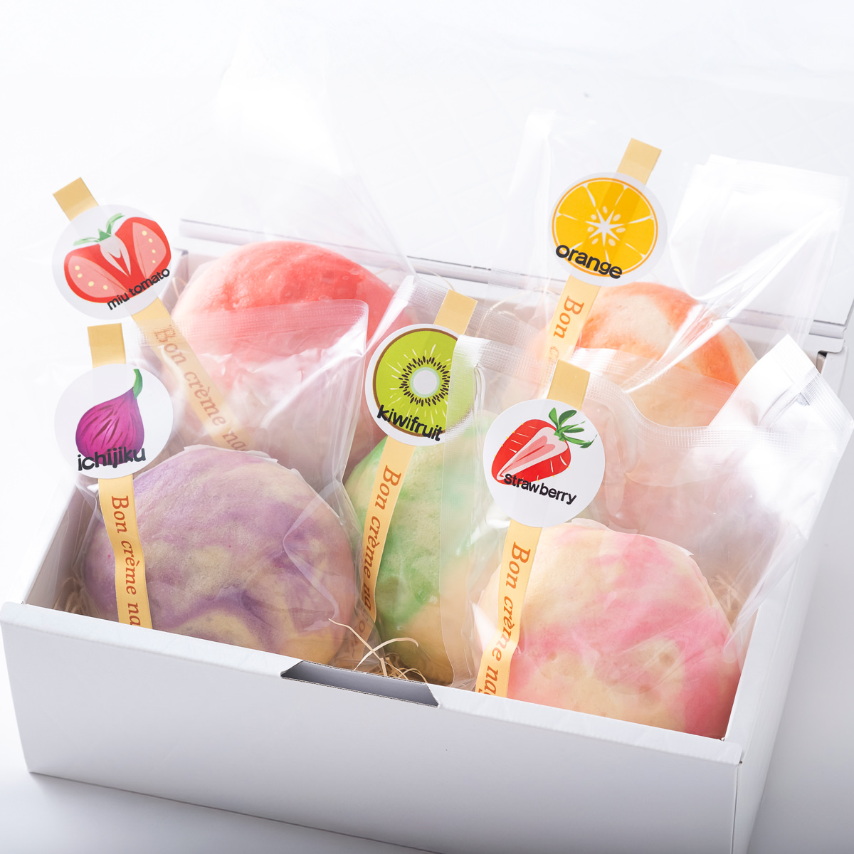 愛知県のBon クレーム名古屋がお届けする「フルーツカスタードまん 食べ比べセット」です。地域の食材を使って商品を作る地産地消に取り組んで、出来上がった商品です。生地には愛知県産の小麦粉「きぬあかり」を使用。濃い味、白くてもっちりとした食感を味わえます。中のカスタードクリームの原料には、愛知県産の「どうまい牛乳」と名古屋コーチンの卵黄のみを使用し、濃い黄色で濃厚なクリームに仕上げています。カスタードクリームと一緒に合わせたジャムとコンポートは、愛知県で採れた旬なフルーツを使い、1つ1つ時間をかけて丁寧に手作業で作っています。苺、Miuトマト、みかん、キウイ、いちじく、それぞれ異なる味わいを食べ比べてお楽しみください。Bon クレーム名古屋は、”名古屋肉まん本舗”のスイーツまん部門として立ち上がったお店です。地産地消にこだわり、厳選した素材を使って、美味しいカスタードまんを作っています。{食べ方}冷たいまま召し上がる場合は、袋のまま冷蔵庫で5~6時間ゆっくり解凍してください。温める場合は、袋の切り口を少しだけ開き、電子レンジ(500~600W)で50秒~60秒ほど加熱してください。