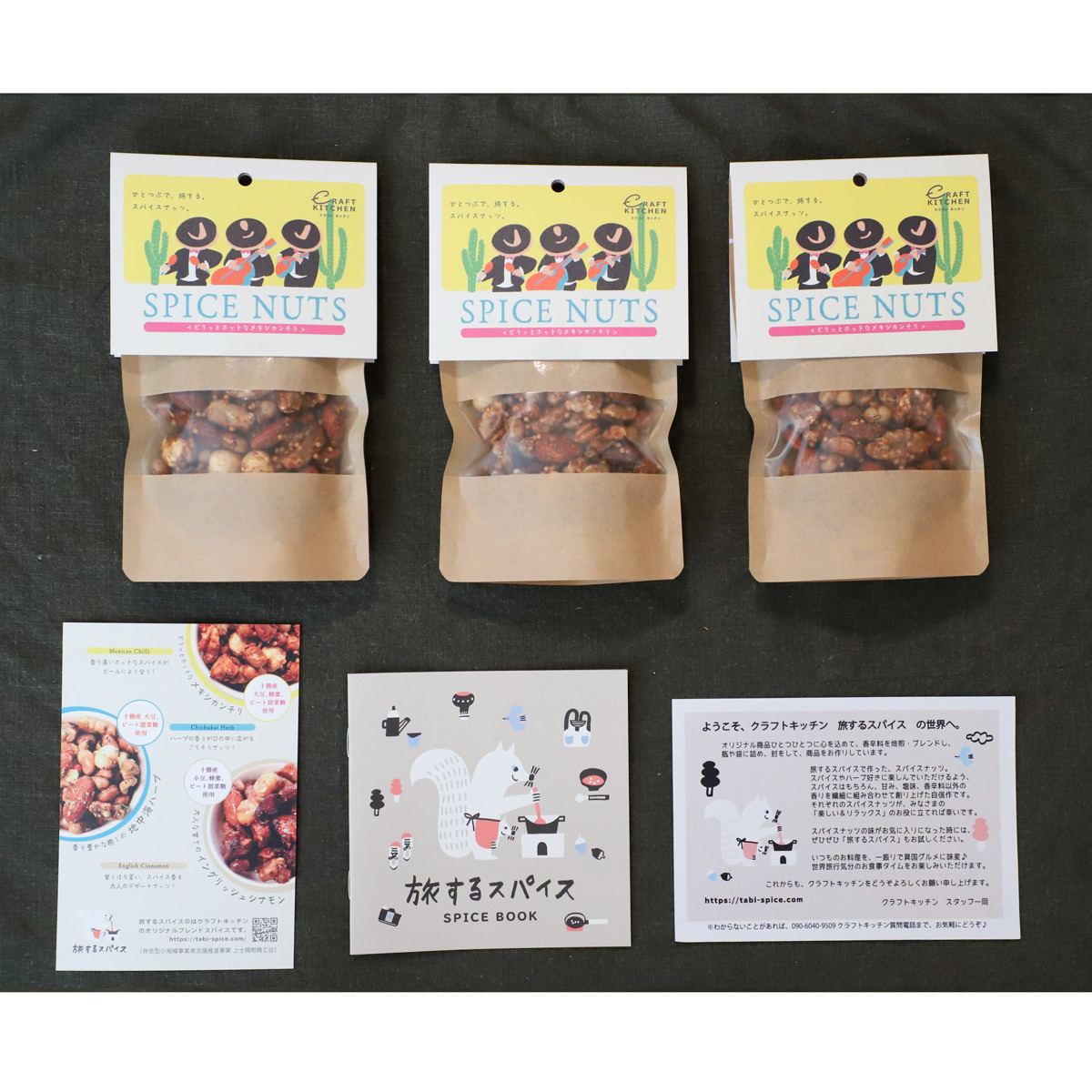 「旅するスパイス スパイスナッツ メキシカンチリ味」は、スパイス専門店ならではのスパイス使いで風味づけした、贅沢な手作りミックスナッツです。旅するスパイス(R)で好評の「メキシカンチリミックス」に、マスタードシード、クミンシード、粗挽きブラックペッパー等を加え、複雑な辛みが後を引く特別感のある風味に仕上げました。北海道産大豆、シナ蜂蜜、てんさい糖など、北海道ならではの素材も使った魅力的なミックスナッツです。60g入りを3袋セットにした、大変お買い得なラージパックです。たくさん味わいたい方に、ホームパーティに、おうちでのリラックスタイムにご家族で、など様々なシーンでお楽しみいただけます。おつまみ、おやつ、お茶請けなどにどうぞ。※「旅するスパイス」は齊藤規子が保有する登録商標です。(商標登録第6389537号)