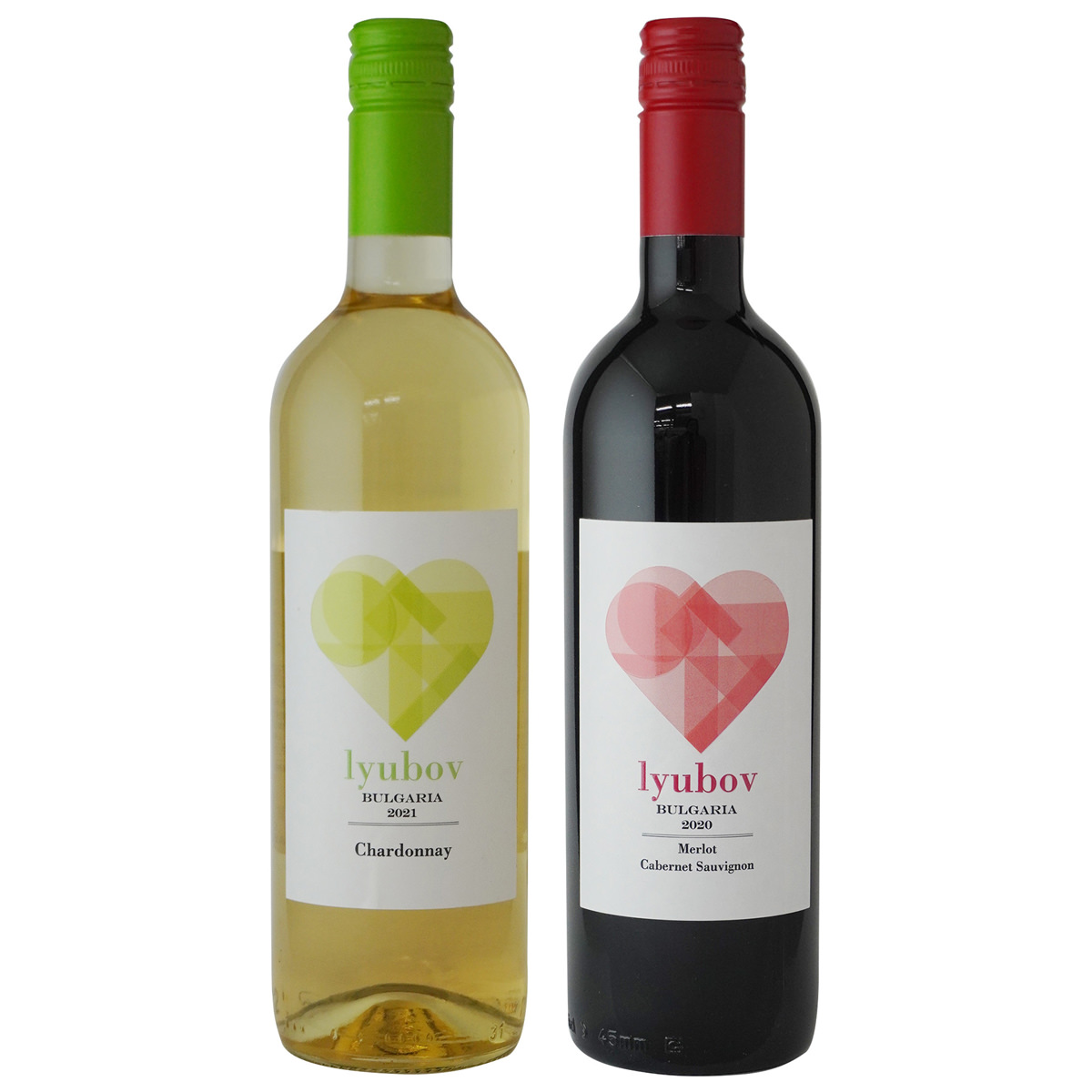 「魅惑のブルガリアワイン リュボフ 赤白 セット」は、バレンタインや母の日のプレゼントなどにもおすすめのハートラベルがおしゃれなワインセットです。リュボフ(lyubov)はブルガリア語で「愛」を表します。愛されるワインを目指して造っています。恵まれた気候風土のブルガリア・ストゥルマ渓谷の厳選ぶどうを使用。原産国:ブルガリア<メルロ-&カベルネソーヴィニヨン>厳選されたぶどうを丹念に醸造し、オーク樽で熟成しました。チェリーやラズベリーなど赤い果実、スミレのような香り、コクのあるまろやかな果実味が広がるミディアムボディの味わいを楽しめます。肉料理と好相性の赤ワインです。<シャルドネ>柑橘類や白桃などのエレガントなアロマ、おだやかな酸味とエレガントな果実の風味が広がる辛口の味わい。エビやホタテといったシーフード、チキン、天ぷらなどと相性の良い白ワインです。※20歳未満、運転前、妊娠中や授乳期の飲酒はお控えください。【アルコール】シャルドネ 11%メルロ-&カベルネソーヴィニヨン 12%
