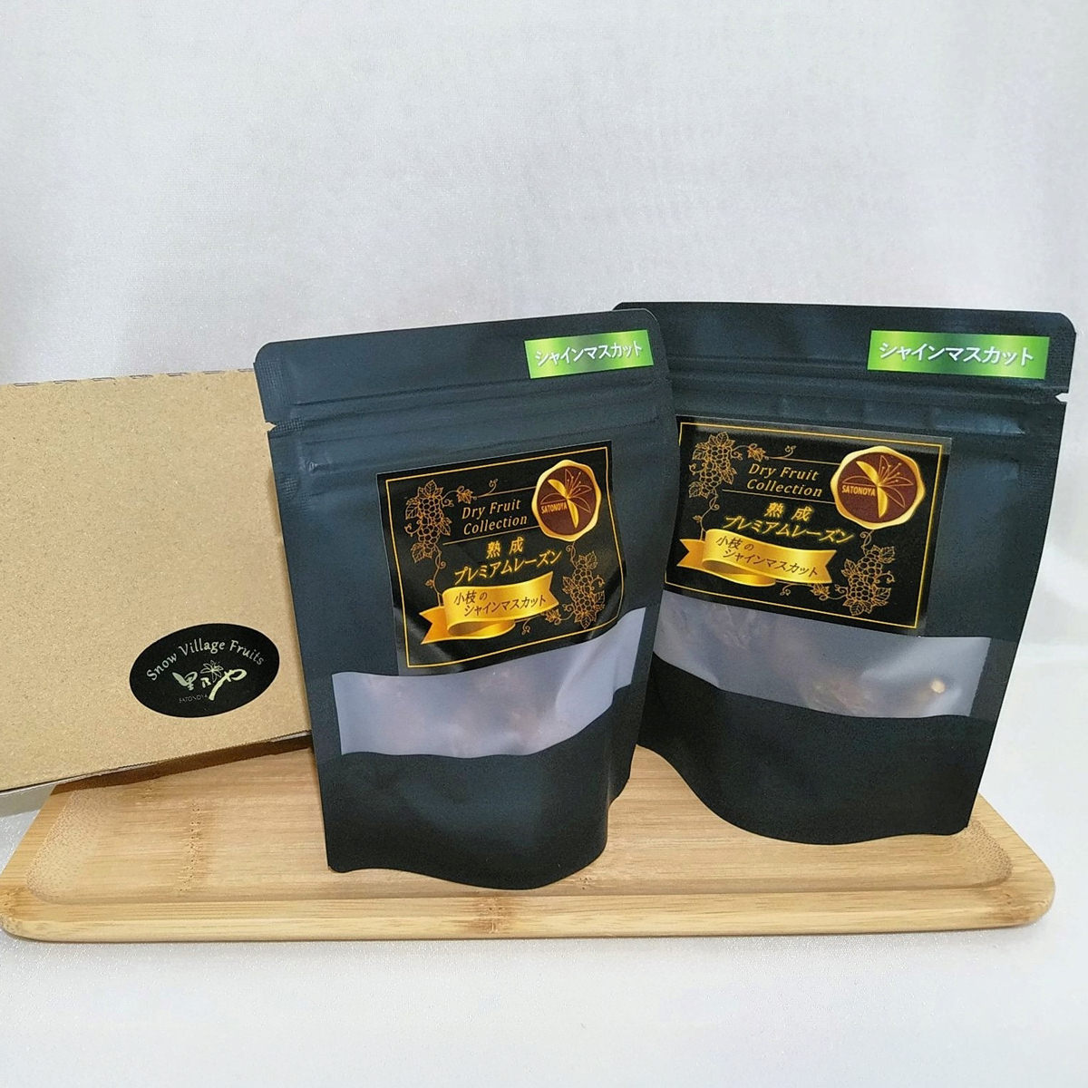 秋田県横手市の名産となっている大粒ぶどうの中から、厳選した房だけを枝付きのまま加温熟成した「里乃や 熟成プレミアムレーズン 小枝のシャインマスカット」です。高級品種で知られるシャインマスカット(秋田県産)を使用し、ジューシーさを一層感じられるようにセミドライに仕上げました。糖類やコーティングオイル等の化学調味料は一切使用していません。素材の味をギュッと凝縮した、無添加の熟成シャインマスカットのレーズンをご堪能ください。ヨーグルト、シリアルに入れて朝食やおやつに、アイスクリームにトッピングしてデザートに、手づくりレーズンパンの材料に使用するなど、さまざまなメニューにご利用いただけます。ワインとの相性も良く、チーズと一緒におつまみとして召し上がるのもおすすめです。