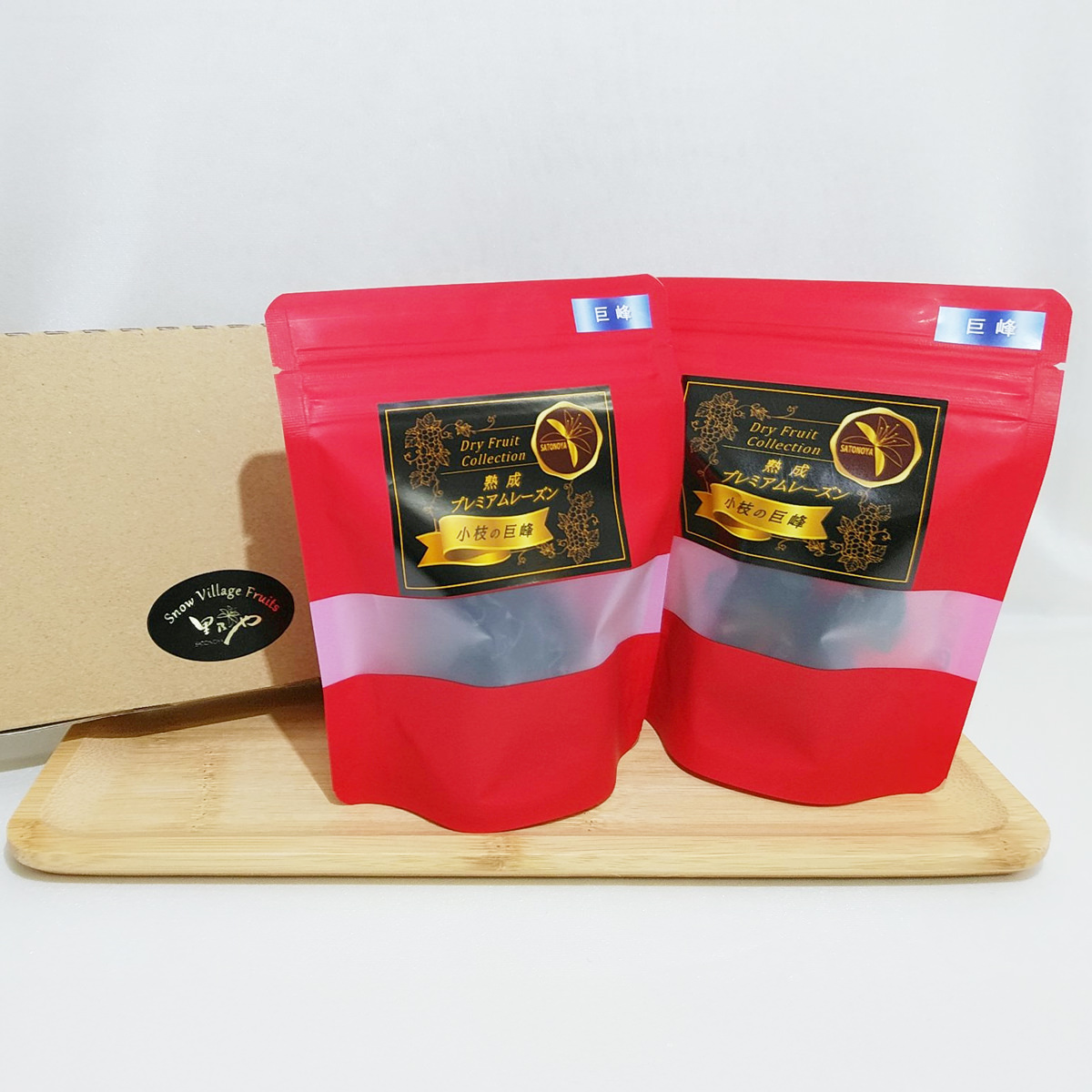 秋田県横手市の名産となっている大粒ぶどうの中から、厳選した房だけを枝付きのまま加温熟成した「里乃や 熟成プレミアムレーズン 小枝の巨峰」です。糖度が高く濃厚な味わいが自慢の巨峰(秋田県産)を使用し、ジューシーさを一層感じられるようにセミドライに仕上げました。糖類やコーティングオイル等の化学調味料は一切使用していません。素材の味をギュッと凝縮した、無添加の希少な巨峰のレーズンをご堪能ください。ヨーグルト、シリアルに入れて朝食やおやつに、アイスクリームにトッピングしてデザートに、手づくりレーズンパンの材料に使用するなど、さまざまなメニューにご利用いただけます。ワインとの相性も良く、チーズと一緒におつまみとして召し上がるのもおすすめです。