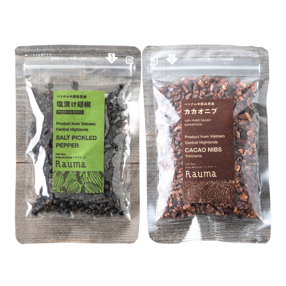 ●数量・内容:塩漬け胡椒25g、カカオニブ50g
