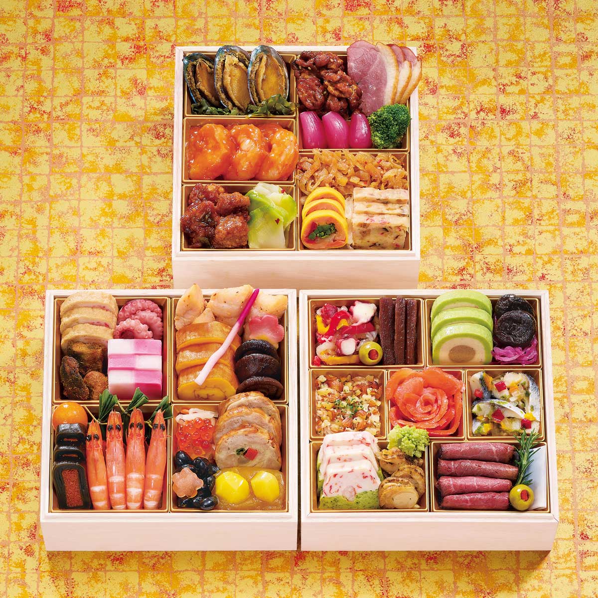 歴史と伝統に培われた”ハイアット リージェンシー 東京”の総料理長 星野勝明監修による彩り豊かな「和洋中おせち 三段重 香寿(こうじゅ)」です。日本料理・西洋料理・中国料理それぞれの素材を吟味し、伝統の調理技術とホテル監修ならではの質の高いお料理を、優雅に盛り付けました。海老チリのソースは料理長直伝のオリジナルソースです。素材の良さを引き出し、手を掛けて丹精込めた料理の数々。急速冷凍技術により、格別の美味しさを実現いたしました。一度解凍したお料理は再冷凍せず、お早めにお召し上がりください。ハイアット リージェンシー 東京は日本初のハイアットホテルとして1980年に開業して以来、国内外多くのお客様をお迎えしています。高層ビルが立ち並ぶ西新宿にありながら四季折々の眺めが楽しめる新宿中央公園に面しており、くつろぎの時間をお過ごしいただけます。{解凍方法}冷蔵庫に入れて解凍してください(約24時間)。解凍後、常温(約20℃)程度の場所に1時間程おいていただきますと一層おいしく召し上がれます。解凍後は冷蔵庫内(5℃以下)で保管してください。