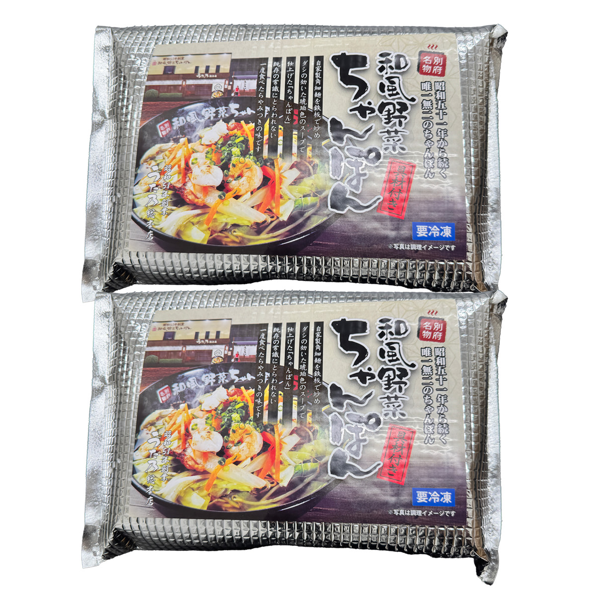 自家製の角細麺を鉄板で炒め、出汁の効いた琥珀色のスープで仕上げた「冷凍 うた乃 和風野菜ちゃんぽん」です。一度食べたらやみつきなる、大分県別府市「うた乃総本店」の看板メニュー、別府名物の和風野菜ちゃんぽんをお取り寄せでお楽しみください。お召し上がりの際は、大きめの鍋でたっぷりのお湯を沸かし、凍ったままの麺を入れ、ほぐしてすぐに湯切りします(目安1分)。熱したフライパンに少量の油をひき、麺を全体に広げて放置し、焦げ目がつくまで強火で両面を焼いてから、どんぶりに移してください。同じフライパンで具材を解凍しながら軽く炒めて麺の上にのせます。鍋に450mlの水を入れて沸騰させ、付属のスープを入れて溶かし、麺と具材にかければ出来上がりです。お好みで小ネギ、ゴマ、こしょうを入れてお召し上がりください。麺を食べた後にごはんを入れて、追いめしを楽しむのもおすすめです。