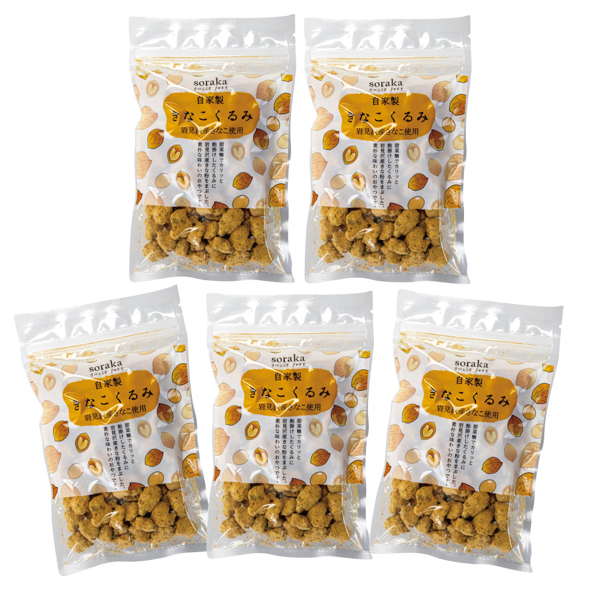 北海道岩見沢のスイーツ販売店&カフェ、Patisserie soraka(パティスリー そらか)がお届けする「国産 きな粉 使用 きなこくるみ」です。くるみをてんさい糖でカリっと飴がけし、岩見沢産きなこをたっぷりとまぶしました。くるみ、てんさい糖、きなこのギルトフリーなおやつです。小腹が空いたとき、お茶請け、おつまみなどにどうぞ。北海道お土産グランプリ(North Wave Selection)2023-2024<スイーツ部門>グランプリを受賞しました。