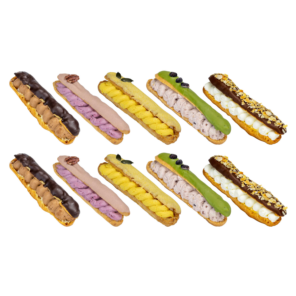 「グルテンフリー 甘さ控えめ 月夜のエクレール ギフト」は、北海道岩見沢のスイーツ販売店&カフェ、Patisserie soraka(パティスリー そらか)がお届けするグルテンフリー製法のエクレアです。北海道産岩見沢産米粉を使用したさっくりと歯切れ良い生地に仕上げています。自慢は、北海道産平飼い卵を使用した自家製カスタード。甘さ控えめなので、甘いものが苦手な方やシニアの方にも好評をいただいています。チョコカスタード、美唄ハスカップ、北海道かぼちゃ、十勝小豆&濃い抹茶、カスタードの5種をセットにしましたので、食べ比べてお楽しみください。冷凍でお届けします。そのままアイスエクレアとして食べるほか、冷蔵庫で1時間ほど解凍してお召し上がりください。解凍後は翌日までに食べきってください。化粧箱に入れてお届けいたしますので、贈り物やプレゼントにもおすすめです。