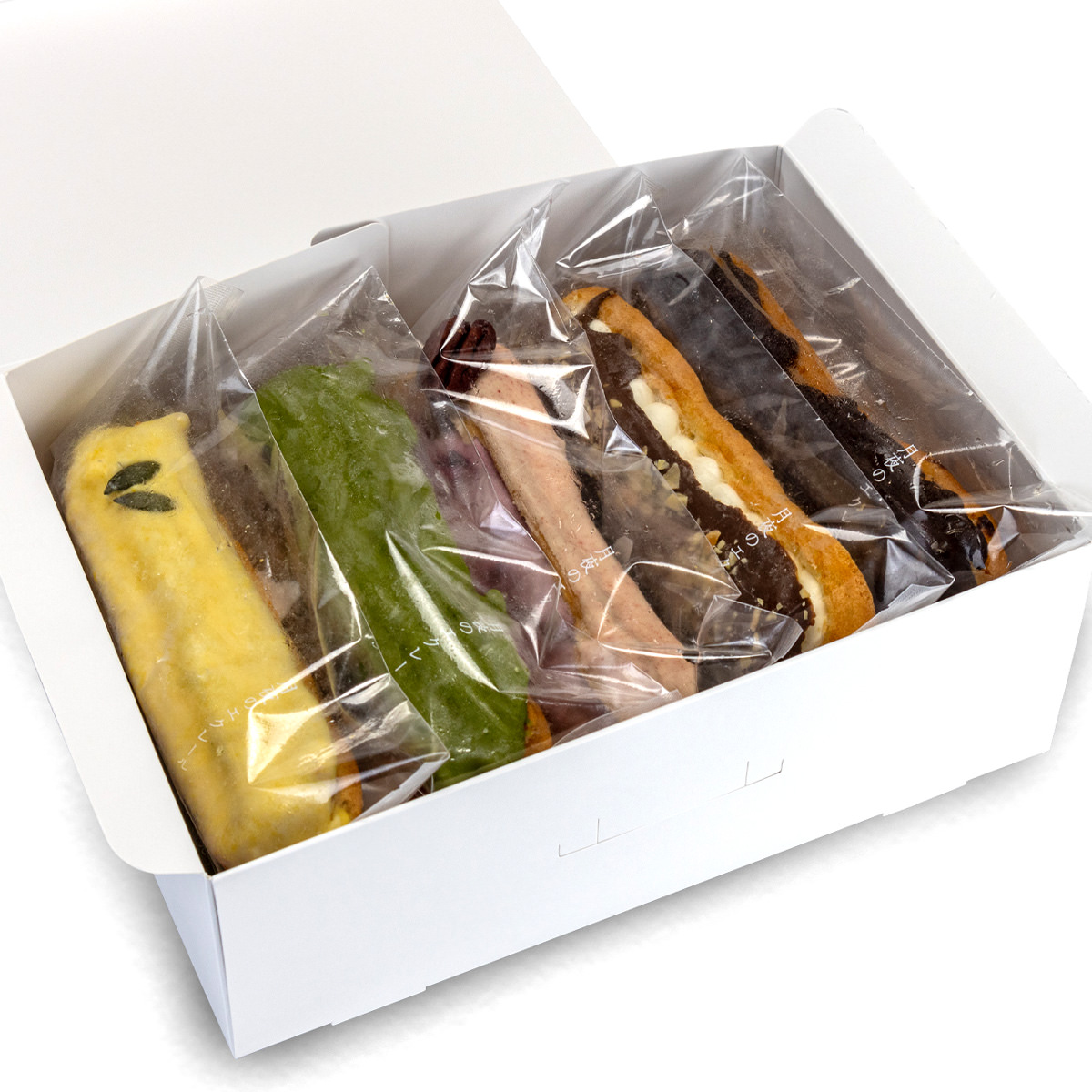 ●数量・内容:チョコカスタード、美唄ハスカップ、北海道かぼちゃ、十勝小豆&濃い抹茶、カスタード 各約70g×2