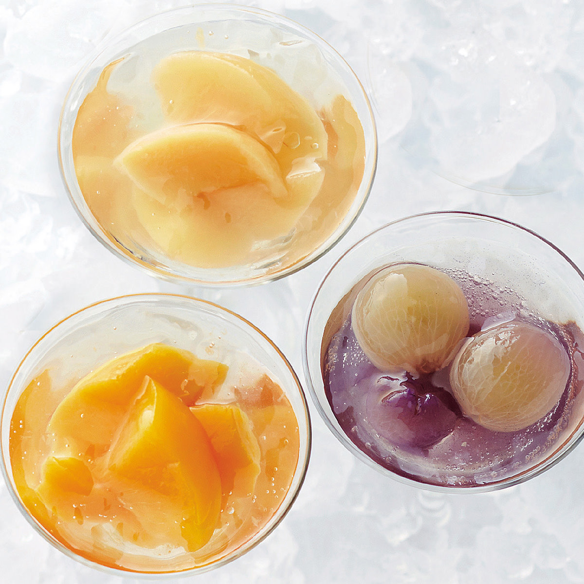 ●原材料:<フルーツコンポート清水白桃>白もも(清水白桃)(岡山県産)、砂糖、洋酒/酸味料、酸化防止剤(V.C)
