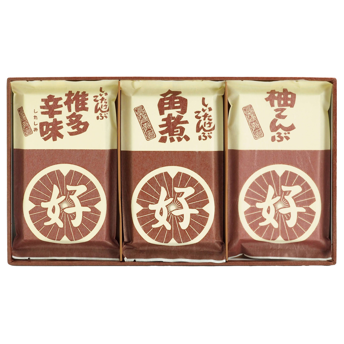 ●数量・内容:椎茸こんぶ角煮、椎多辛味、柚こんぶ 各120g