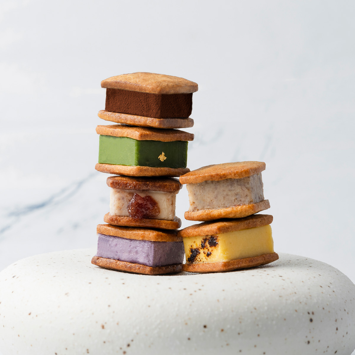 ●数量・内容:(濃厚抹茶、クラッシュレーズン、いちじくの赤ワイン煮、湯浅角長しょうゆプリン、完熟ブルーベリー、ティラミス) 各約20g×2