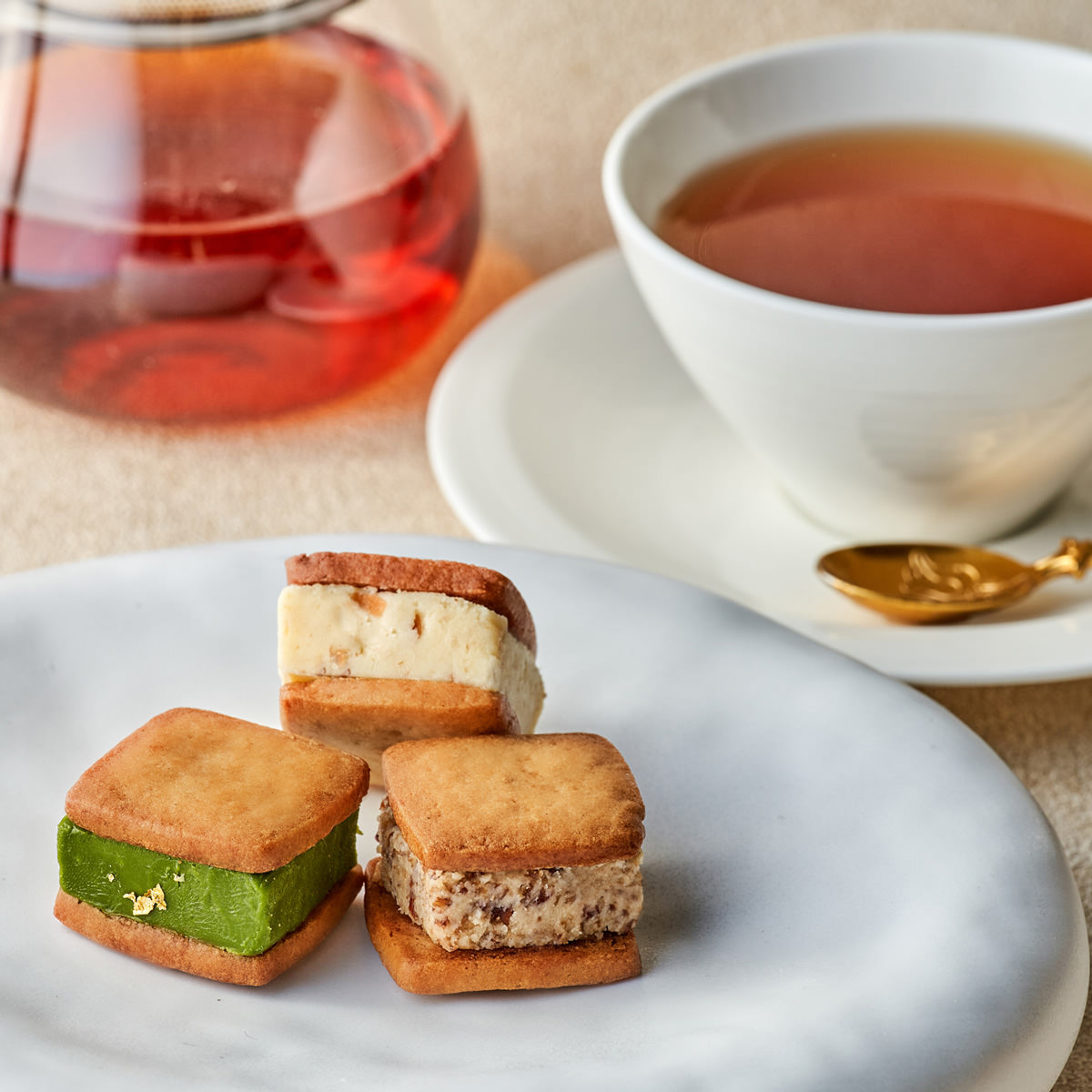 和歌山バターサンド専門店「BUTTER SAND 101」がお届けする「バターサンド 詰め合わせ」です。一度に様々なフレーバーが楽しめる『ひとくちの幸せという贈り物』をコンセプトに、年間を通して果物が豊富な和歌山県で作りました。県内事業者とのコラボも多い自慢のスイーツです。麦芽粕を練り込んだ低糖質サブレ生地、ひとくちに溶け込む和歌山の厳選素材を使用。濃厚抹茶、クラッシュレーズン、いちじくの赤ワイン煮(和歌山県産食材使用)、湯浅角長しょうゆプリン(和歌山県産食材使用)、完熟ブルーベリー(和歌山県産食材使用)、ティラミスをセットにしました。おやつやお茶菓子などとして、味わいの違いを食べ比べてお楽しみください。ひとくちサイズなので、複数のフレーバーを一度に味わえます。冷凍でお届けしますので、解凍してからお召し上がりください。