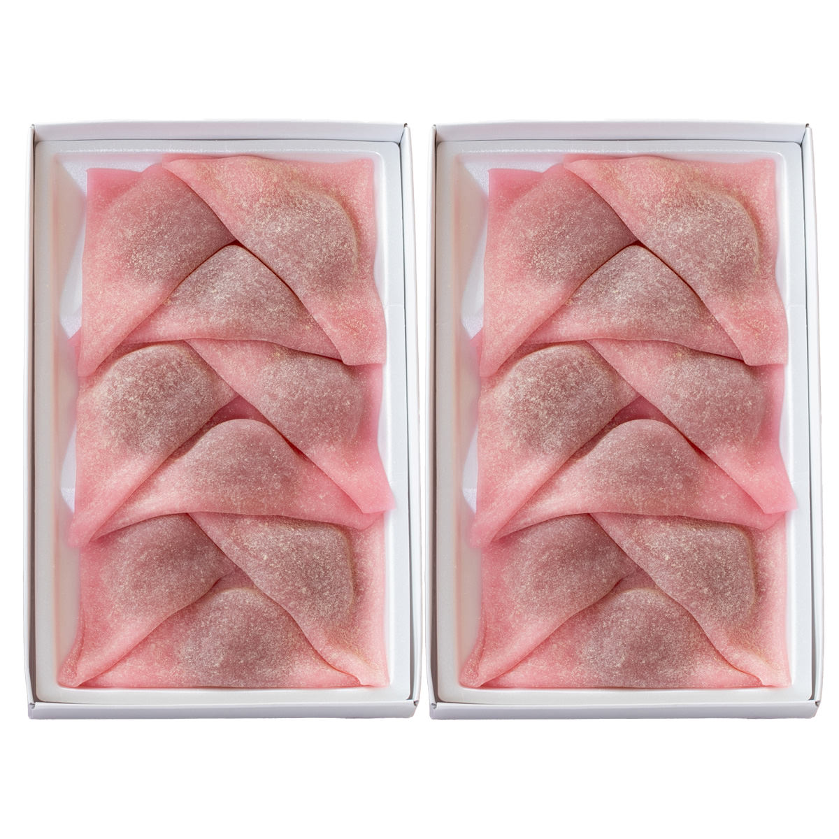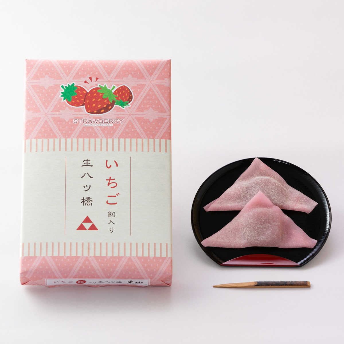 京銘菓である生八ツ橋の生地でいちご餡を包んだ「東山八ツ橋本舗 いちご餡入 生八ツ橋」です。いちご果実を使用したイチゴソースを練り込んだ赤色のいちご餡を、もっちりとしたピンク色の生地で包みました。餡に入っております、いちごのつぶつぶ感をお楽しみいただける和スイーツです。おやつやお茶請けなどとして、京都の伝統の和菓子をご賞味ください。