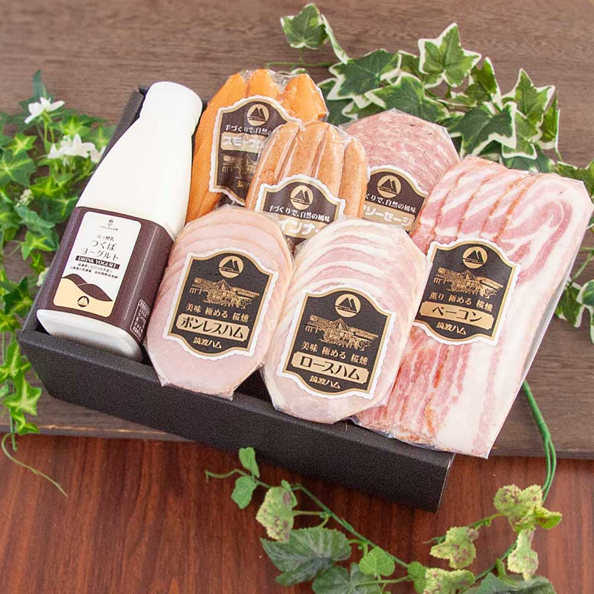 ●数量・内容:ロースハムスライス70g、ボンレスハムスライス70g、ベーコンスライス120g、ウインナー100g、ビアソーセージ80g、スモークササミ120g、つくばヨーグルト500ml