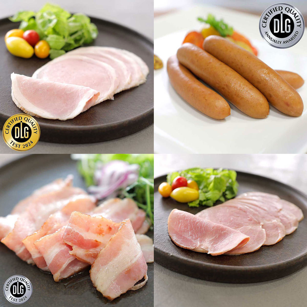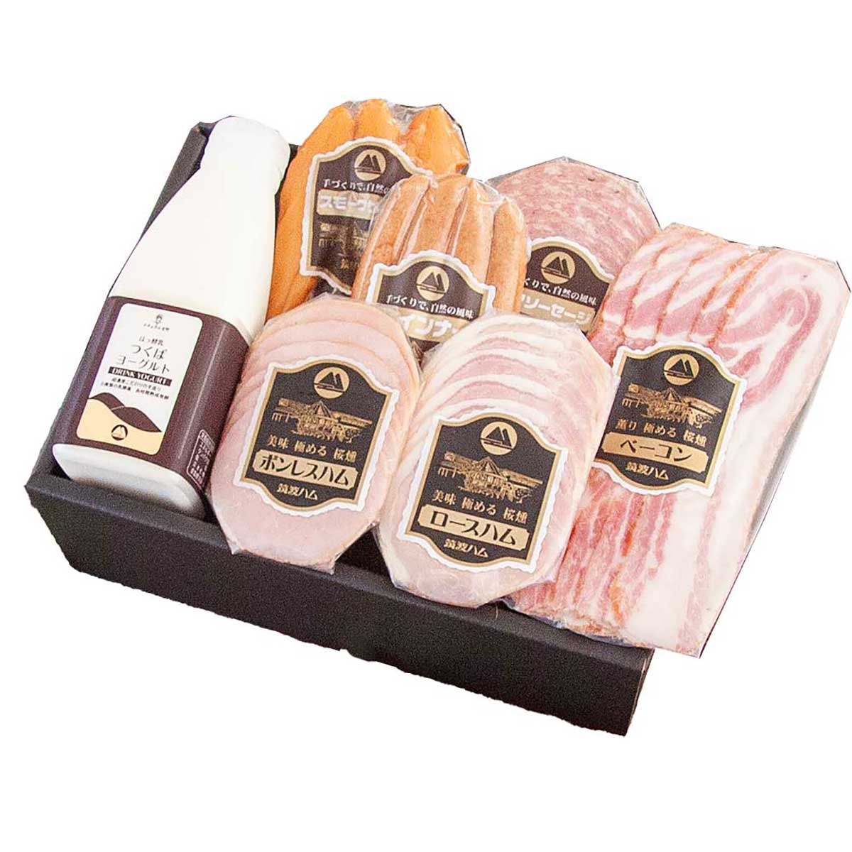 「筑波ハム ギフト 詰め合わせ」は、2024年DLGコンテスト(ドイツ農業協会主催の国際ハム・ソーセージ品質コンテスト)金賞受賞の「ロースハム」のスライスなどを中心とした、バラエティ豊かなセットです。<ロースハム>茨城県産ブランド豚「常陸の輝き」を使用。桜の薪でスモークした、しっとり柔らかなハム。<ボンレスハム>あっさりとした味わい。噛むほどに広がる深いコク。<ベーコン>ばら肉の旨みたっぷりの脂身と香ばしさが美味。<ウィンナー>余計な添加物を控え、じっくりと燻製をかけて香ばしい風味をプラス。ぷりっとした食感、ジュワッとあふれる肉汁が美味。<ビアソーセージ>肉本来の旨みとジューシーさを楽しめるノンスモークタイプ。<スモークササミ>厳選した国産鶏ささみの燻製。しっとりした食感と豊かな香ばしさ。<ヨーグルト>茨城県産牛乳を使用した飲むヨーグルト。なめらかな食感と程よい酸味が特徴。{食べ方の例}<ハム>おつまみ、サラダ、サンドイッチ<ベーコン>おかず、料理の具材<ウインナー>あらゆるレシピに<ビアソーセージ>おつまみ<スモーク>サラダ、おつまみ<ヨーグルト>デザート