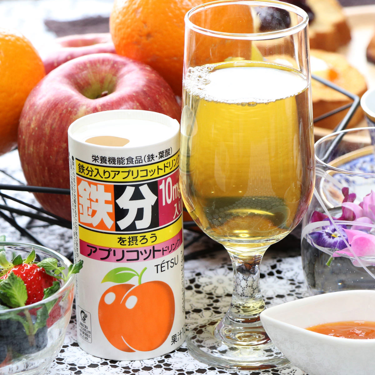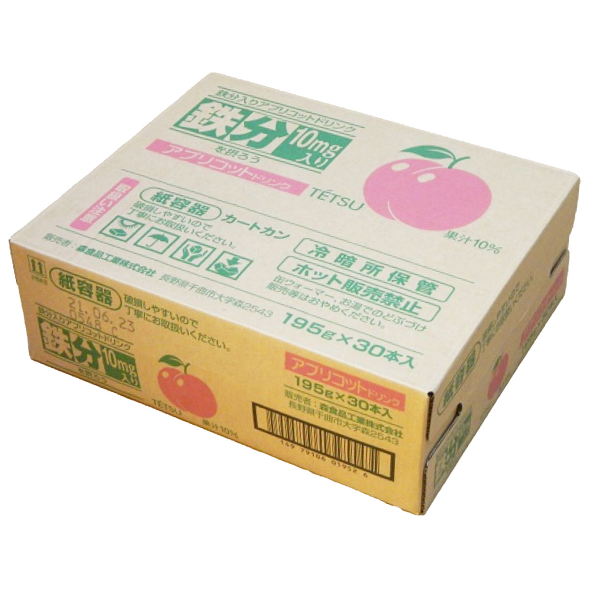 長野県の森食品工業がお届けする「鉄分入り アプリコットドリンク」です。重要な栄養素である鉄分を美味しく気軽に摂れるようにあんず味でご用意いたしました。赤血球を作るのに必要な栄養素でありながら、食品からは吸収しにくい鉄分や葉酸が含まれています。日頃不足しがちな鉄分を美味しくお手軽に補給していただける商品です。【栄養機能食品】栄養成分の機能:鉄は、赤血球を作るのに必要な栄養素です。葉酸は赤血球の形成を助ける栄養素です。葉酸は胎児の正常な発育に寄与する栄養素です。摂取目安量:1日あたり1本(195g)を目安にお召し上がりください。注意事項:本品は多量摂取により疾病が治癒したり、より健康が増進するものではありません。一日の摂取目安量を守ってください。