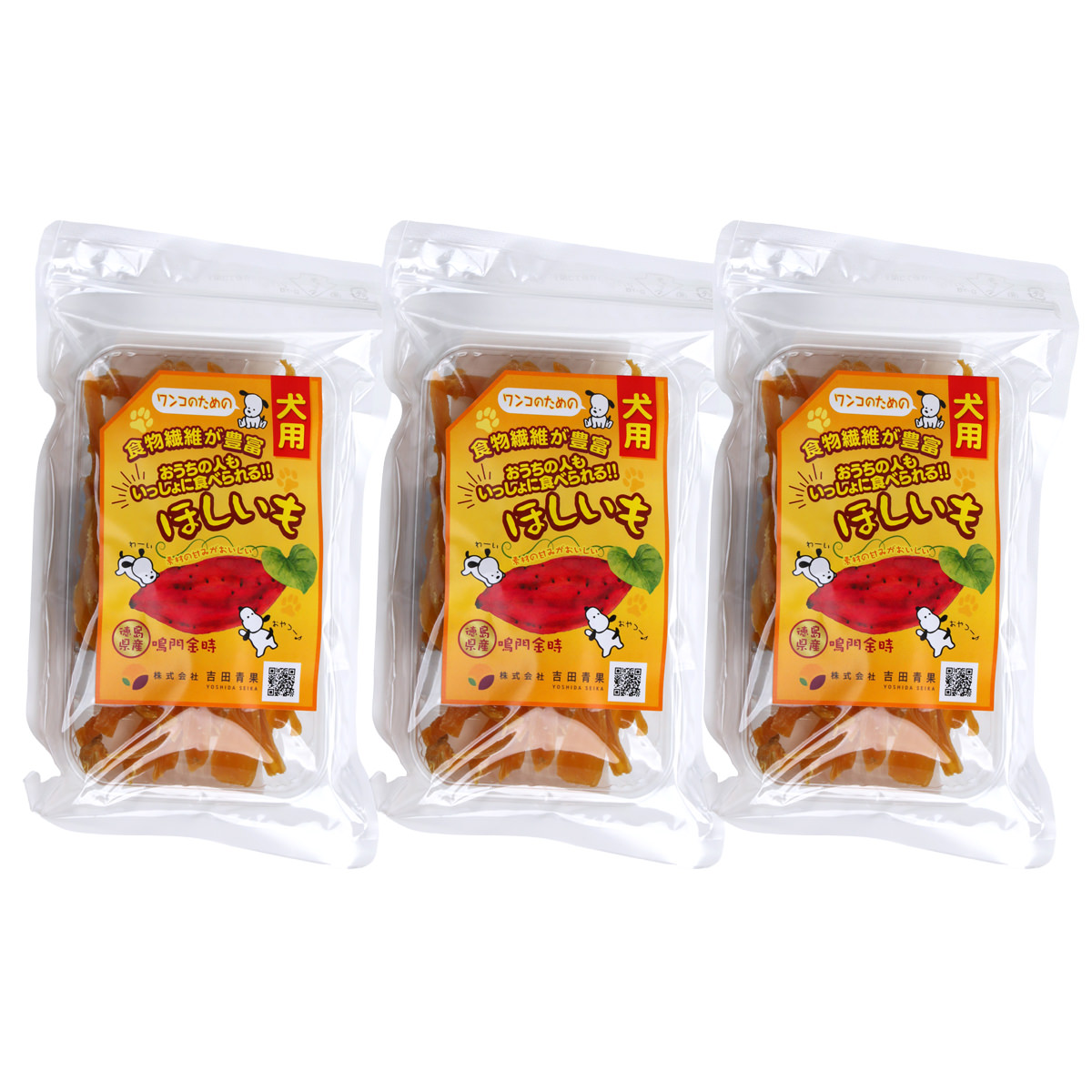 徳島県の吉田青果がお届けする「犬用 ほしいも 徳島県産 鳴門金時 おやつ」です。原料に徳島県のブランドさつまいも「鳴門金時(なるときんとき)」を使用。鳴門金時には食物繊維、ビタミンCが豊富に含まれています。人間だけでなく、犬にもおすすめです。さつまいもを茹で上げ、程よい固さに乾燥させています。原材料はさつまいものみを使用し、無添加で仕上げております。おうちの人も一緒に食べられるおやつです。{与え方}体重:給与量の目安(1日あたり)1~5kg(超小型犬):8~26g5~10kg(小型犬):26~45g10~20kg(中型犬):45~75g20~40kg(大型犬):75~126g【使用期限】製造日から60日