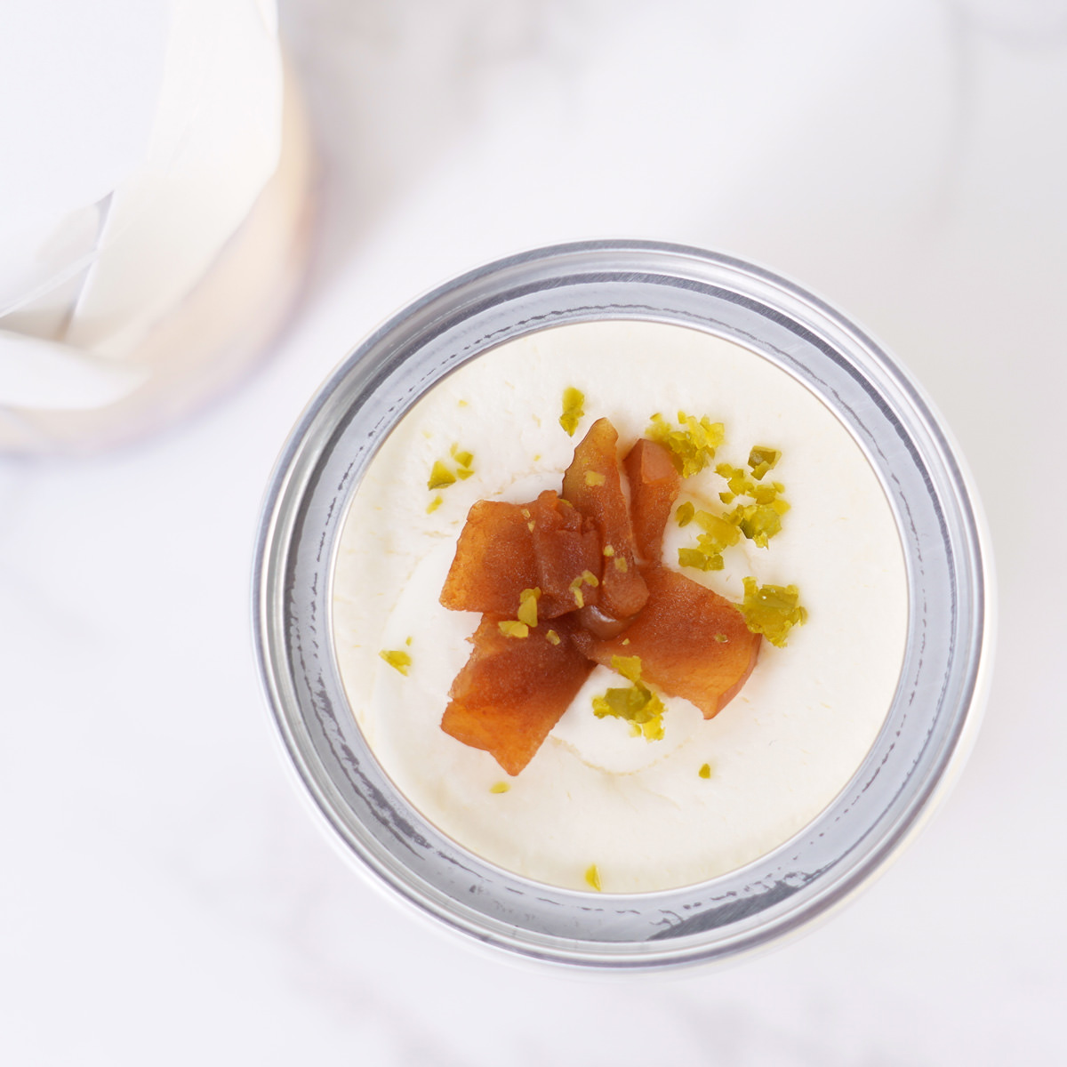 ●原材料:生クリーム(国内製造)、クリームチーズ、砂糖、りんご、アーモンドダイス、スポンジケーキ、レモン果汁、ゼラチン、ピスタチオ、シナモンパウダー/安定剤(増粘多糖類)、(一部に乳成分・小麦・卵・ゼラチン・アーモンド・りんごを含む)